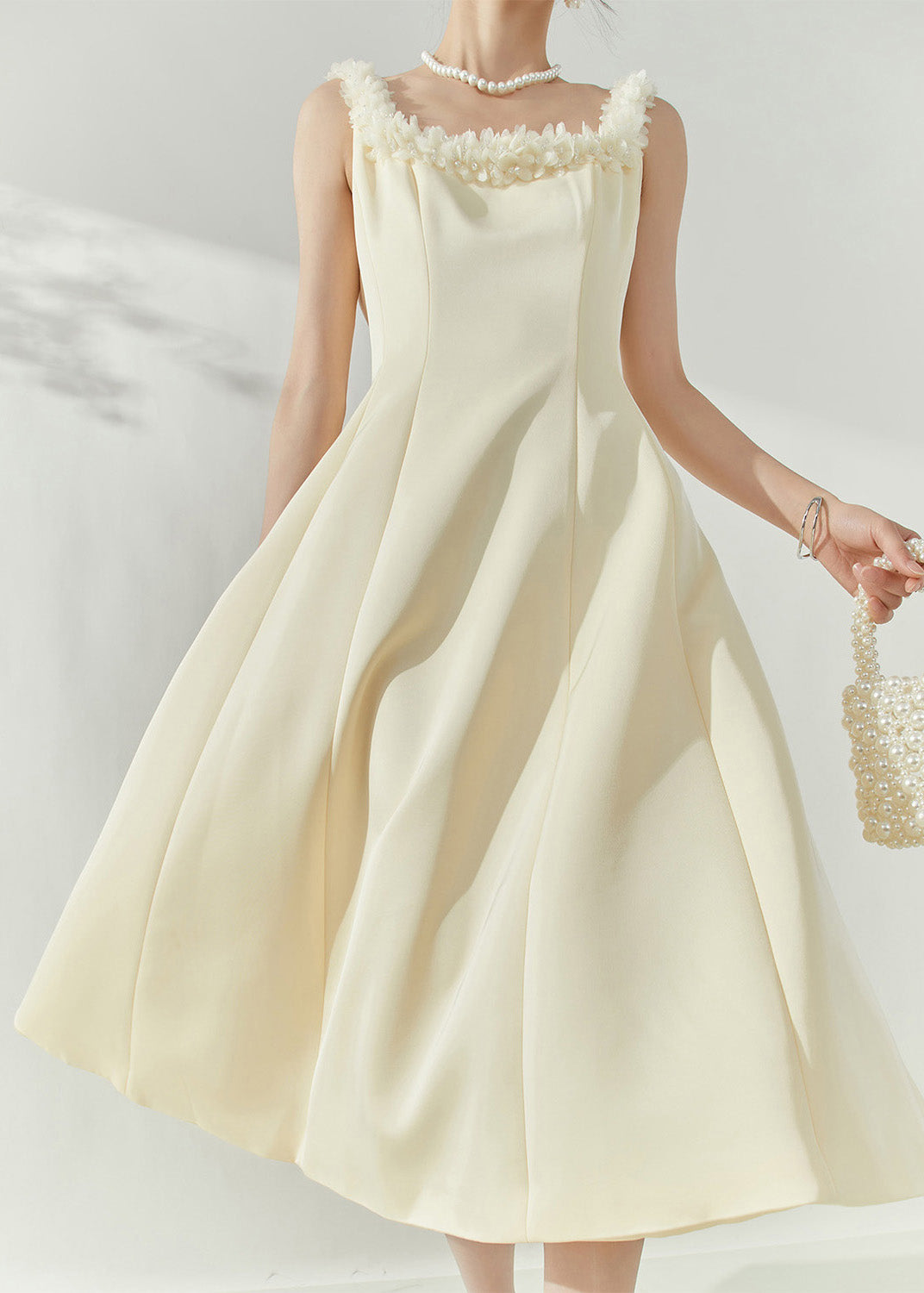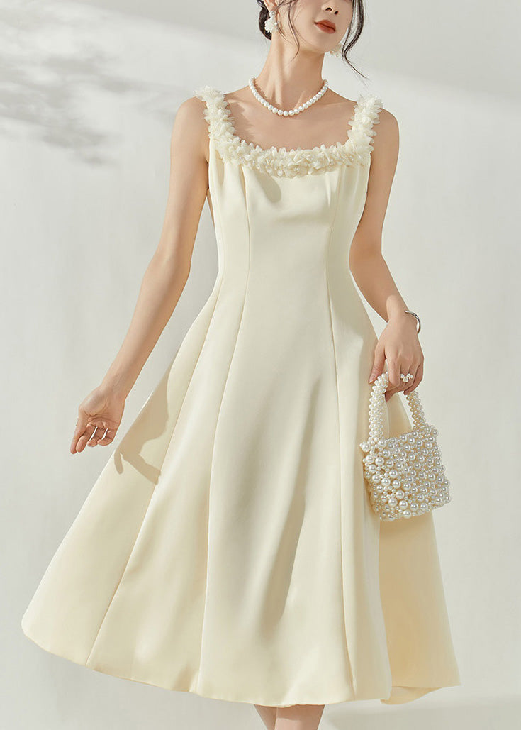 French Beige Square Collar Floral Maxi Dresses Sleeveless