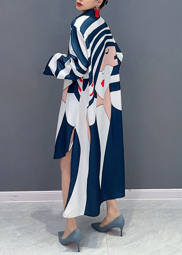 New Asymmetrical Artistic Face Graphic Print Shirtdress With Fall