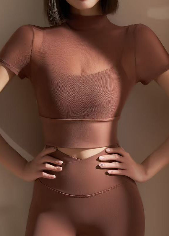 Chic Chestnut Color Tie Waist Riding Leggings Shorts
