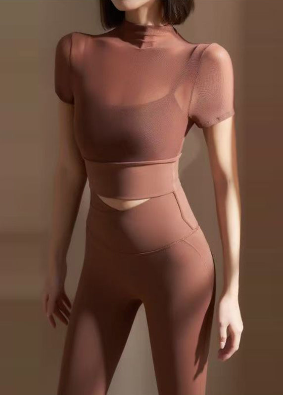 Pink Cold Shoulder Hollow Out Yoga Tops