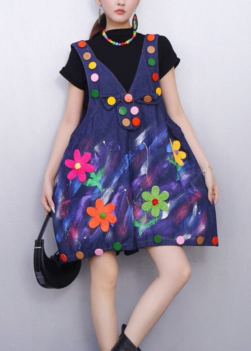 Urban Garden Charm Floral Embroidered Denim Jumpsuits Bold Accents