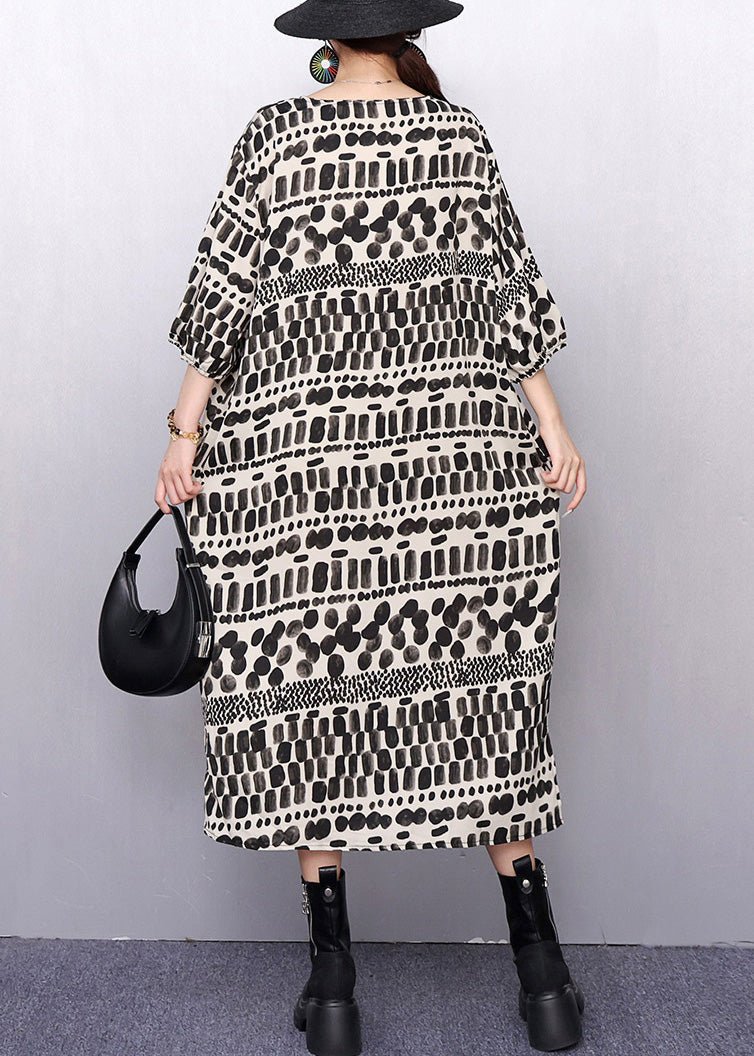 Artistic Patterned Print Pockets Cotton Long Dress Half Sleeve