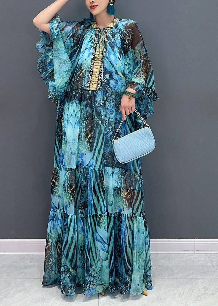 Elegant And Noble Emerald Ruffled Maxi Dress Lantern Sleeve