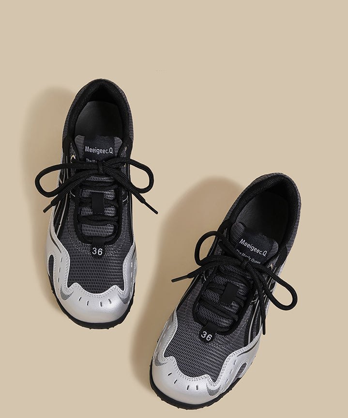 Fashion Lace Up Splicing Flat Feet Shoes Yellow Breathable Mesh