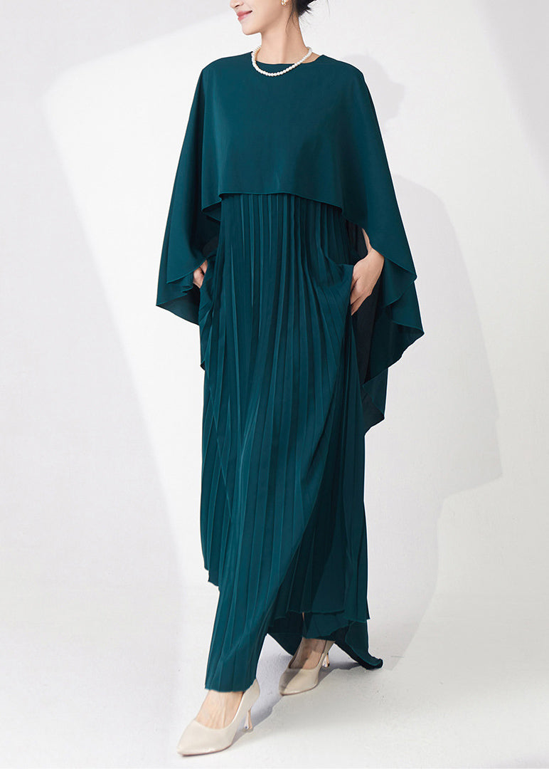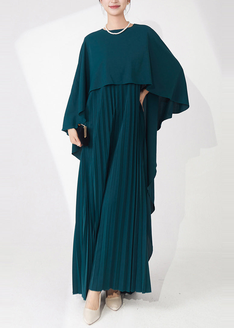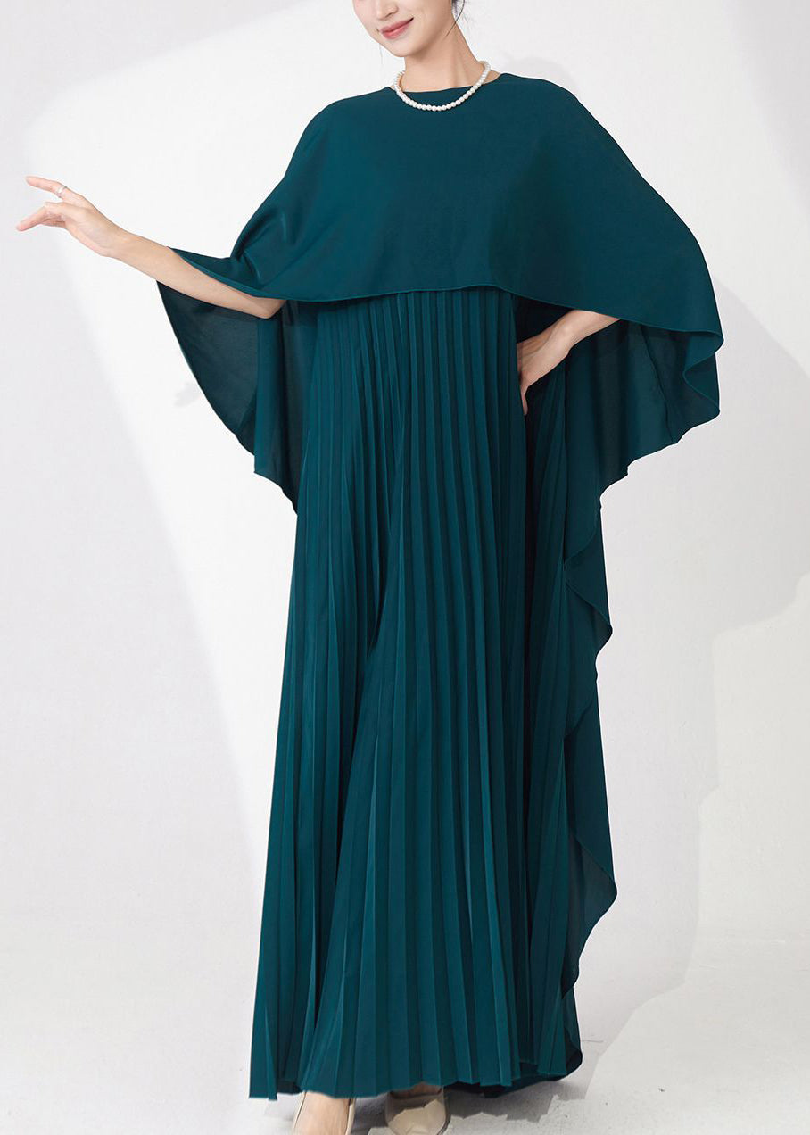 High Quality Teal Cape-Style Wrinkled Chiffon Party Dress Fall