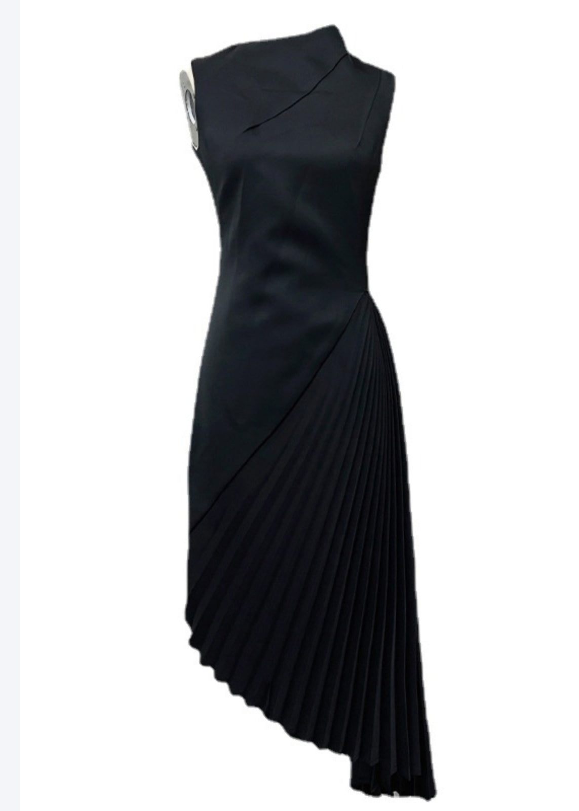 Classy Black Asymmetrical Wrinkled Cotton Party Dress Batwing Sleeve