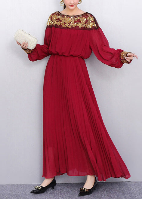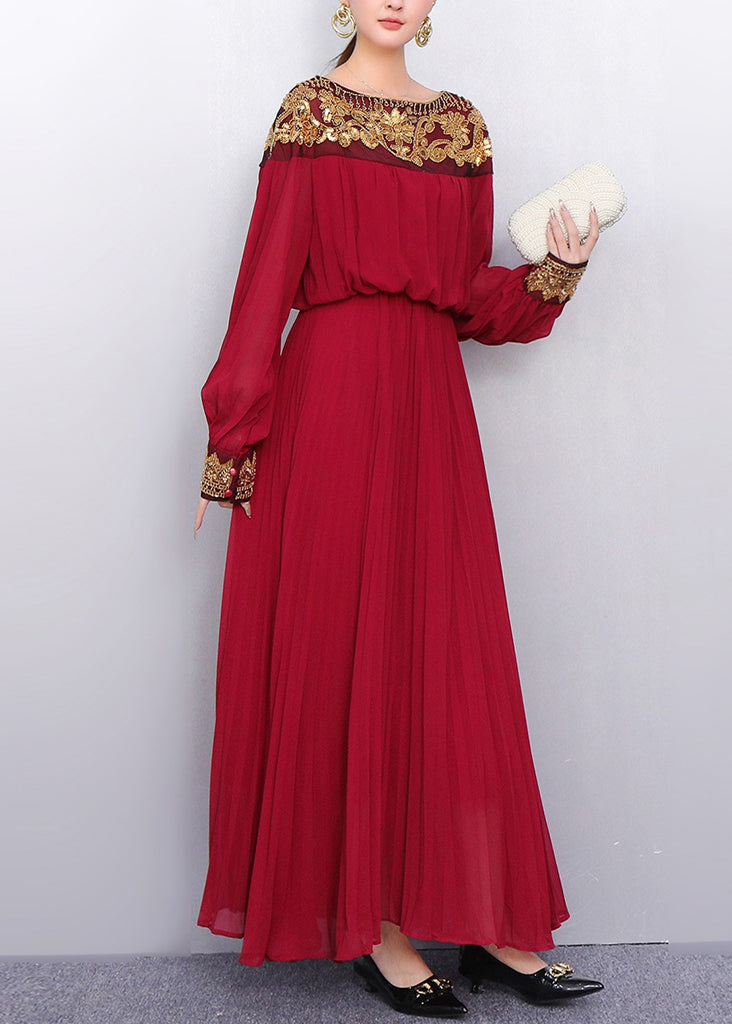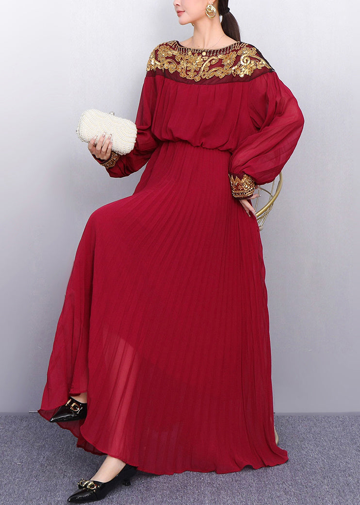 Retro Elegance Mulberry Sequins Embroidered Haute Couture Dinner Dress
