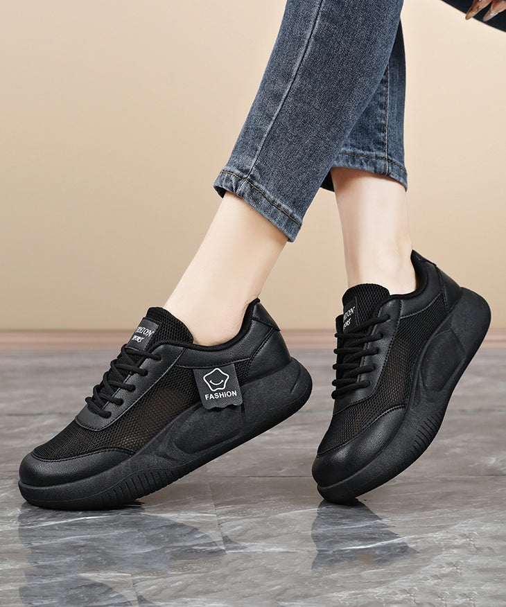 Black Platform Breathable Mesh Stylish Splicing Flat Feet Shoes
