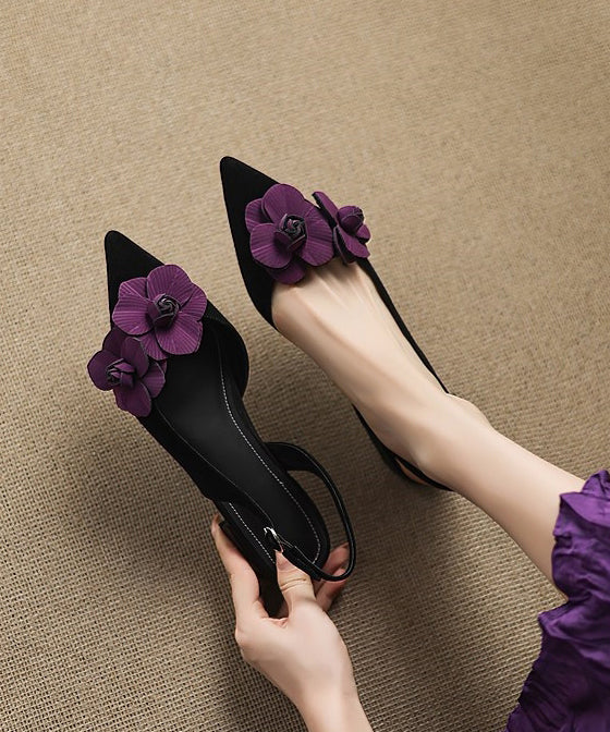 Black Suede Fitted Floral Splicing Sandals Pointed Toe