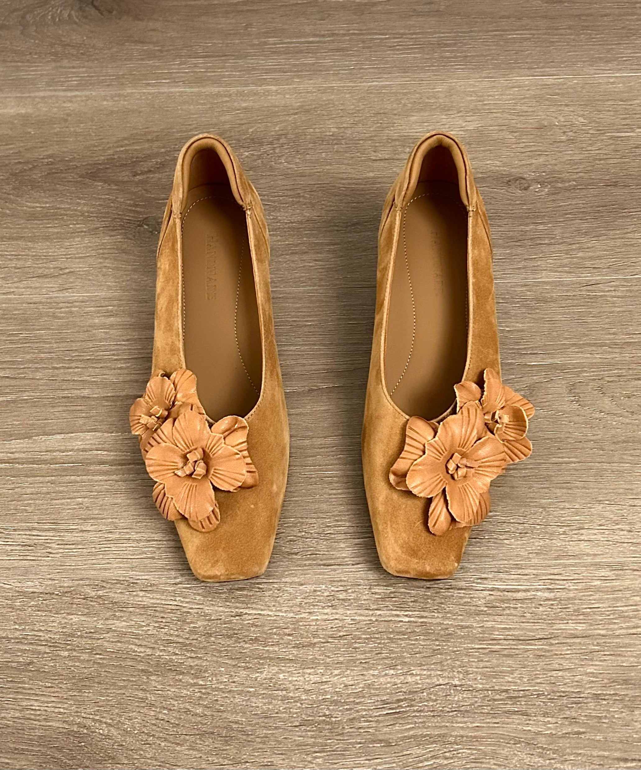 Caramel Wedge Heels Shoes Suede Chic Splicing Floral