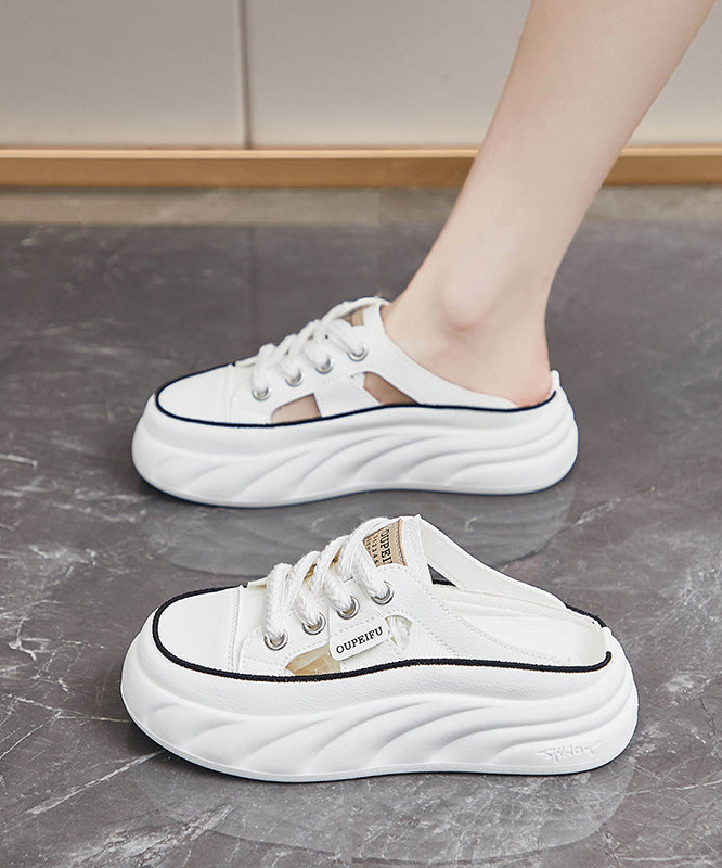 Beige Platform Faux Leather Casual Splicing Flat Shoes