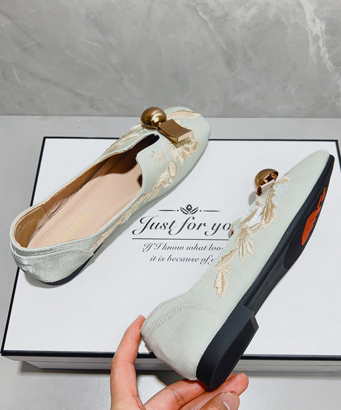 Women Splicing Flat Shoes Green Breathable Mesh Embroidered