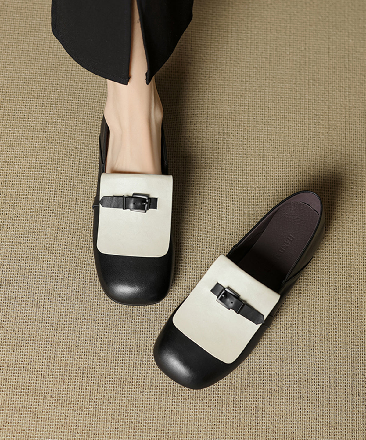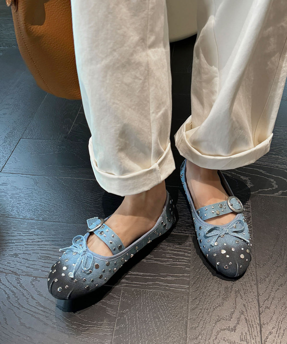 Original Design Blue Rivet Buckle Strap Splicing Flat Feet Shoes