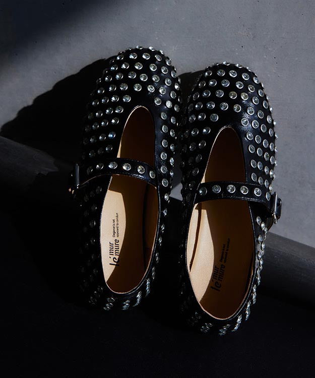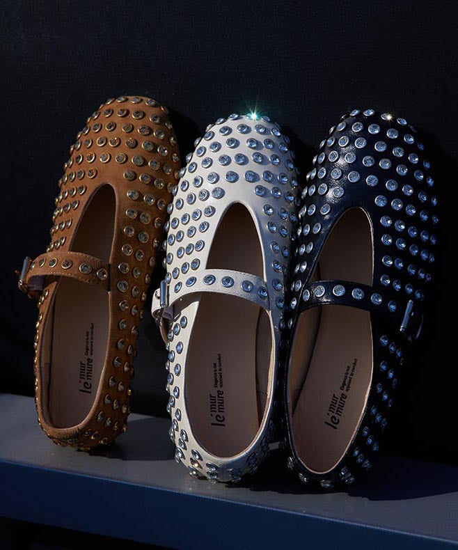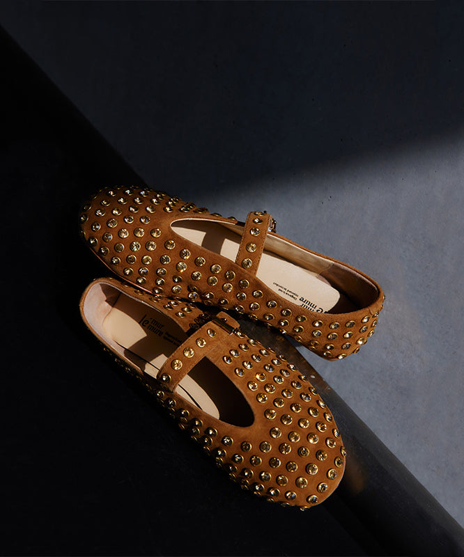 Boutique Rivet Zircon Splicing Flat Shoes Brown Suede