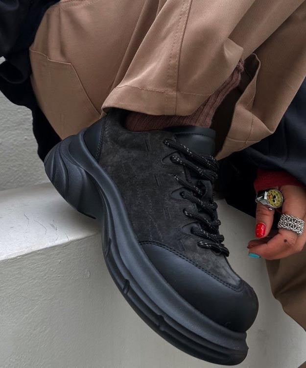 Streetwear Silver Lace Up Cowhide Leather Platform Shoes