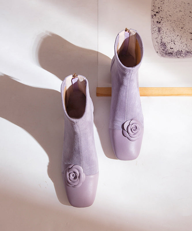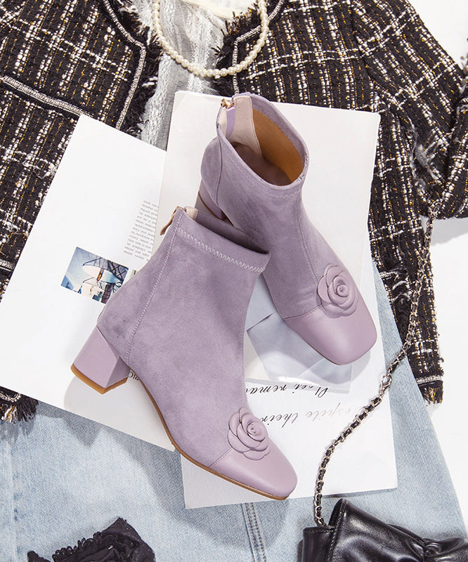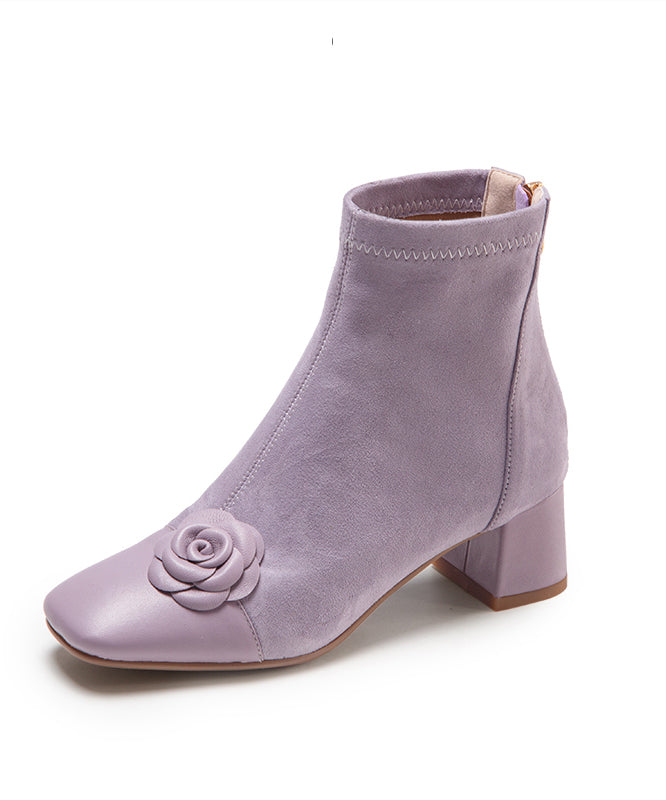 Elegant Purple Suede Floral Splicing Chunky Boots