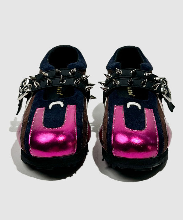 Boutique Splicing Chunky Loafer Shoes Pink Calf Buckle Strap