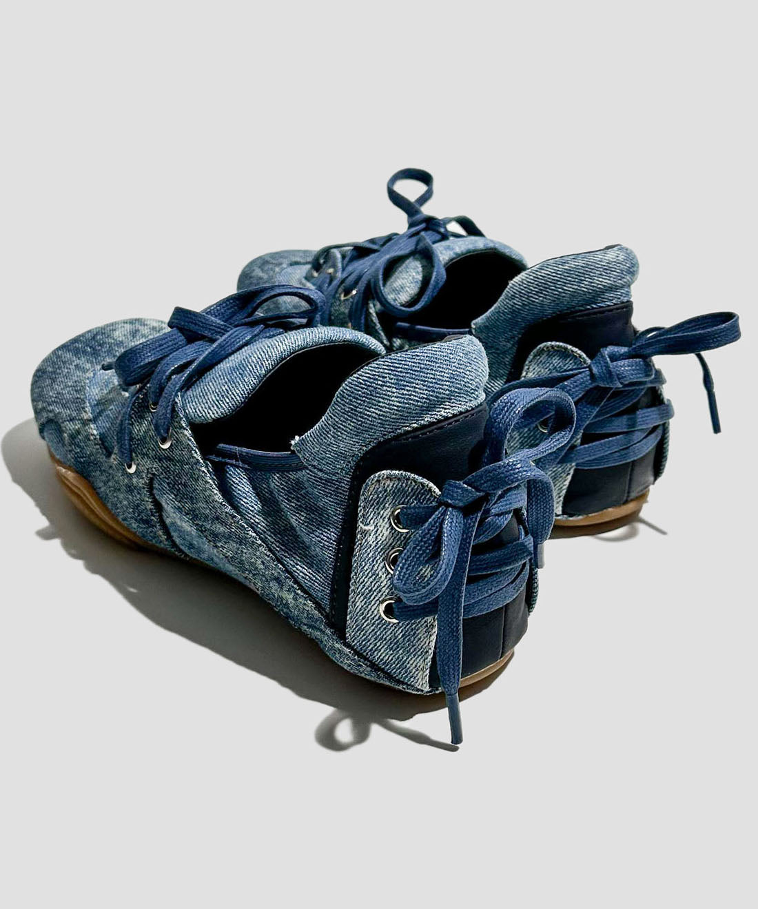 Stylish Blue Lace Up Splicing Denim Flat Feet Shoes