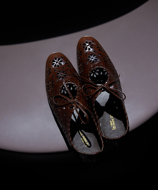 Coffee Cowhide Leather Comfy Splicing Lace Up Flat Shoes