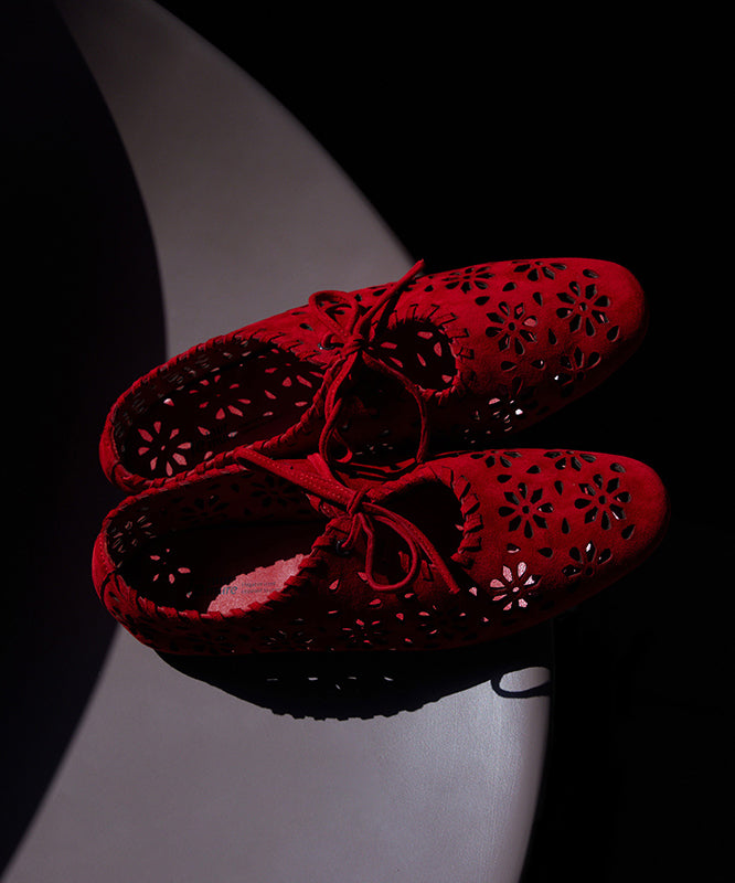 White Cowhide Leather Splicing Hollow Out Lace Up Flat Shoes