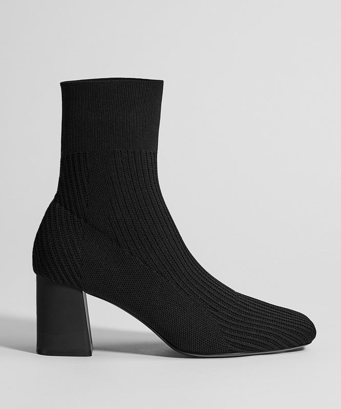 Women Grey Stretch Fabric Splicing Chunky Boots