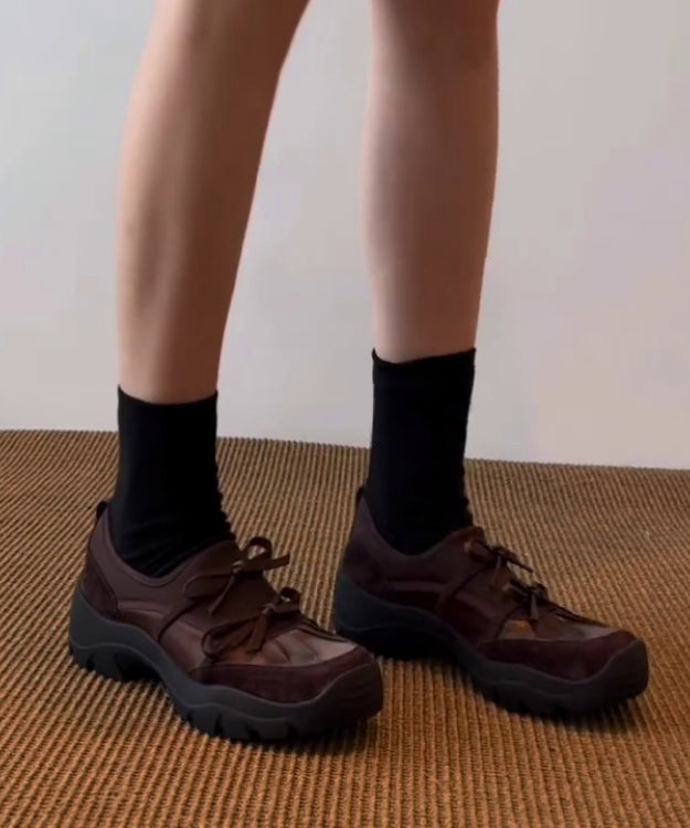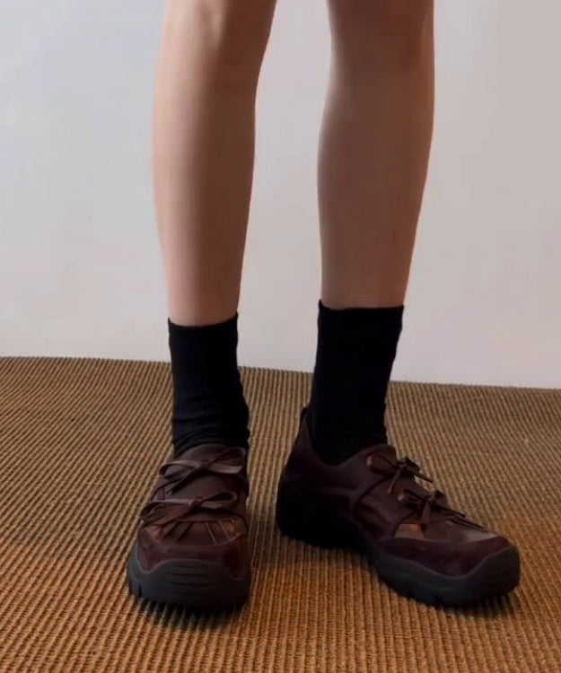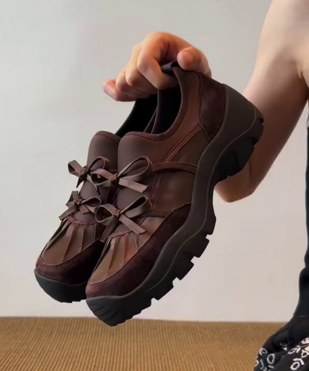 Brown Faux Leather Loafers For Women Splicing Bow