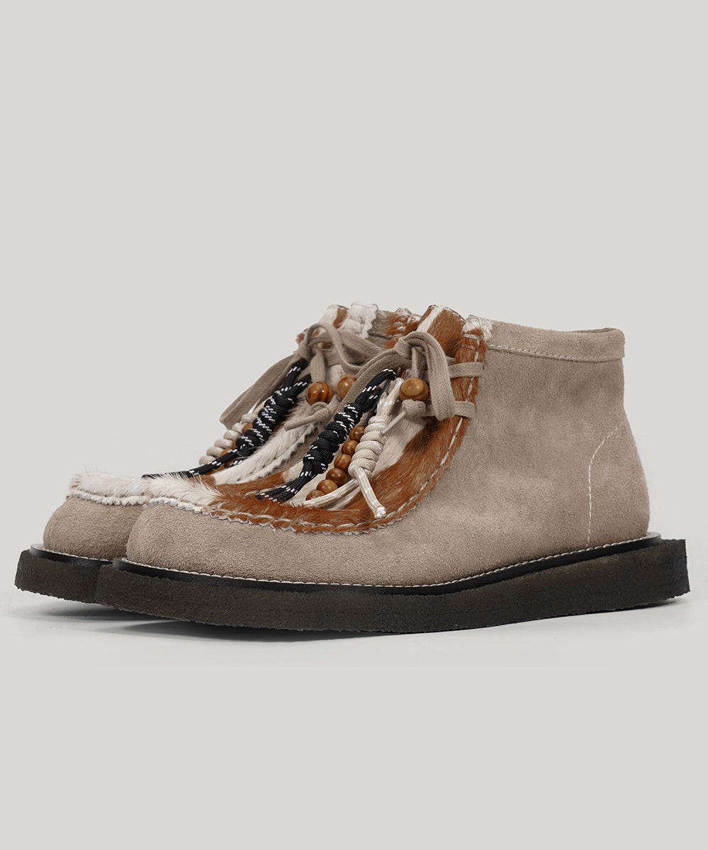Original Design Suede Flat Shoes Splicing Horsehair Lace Up