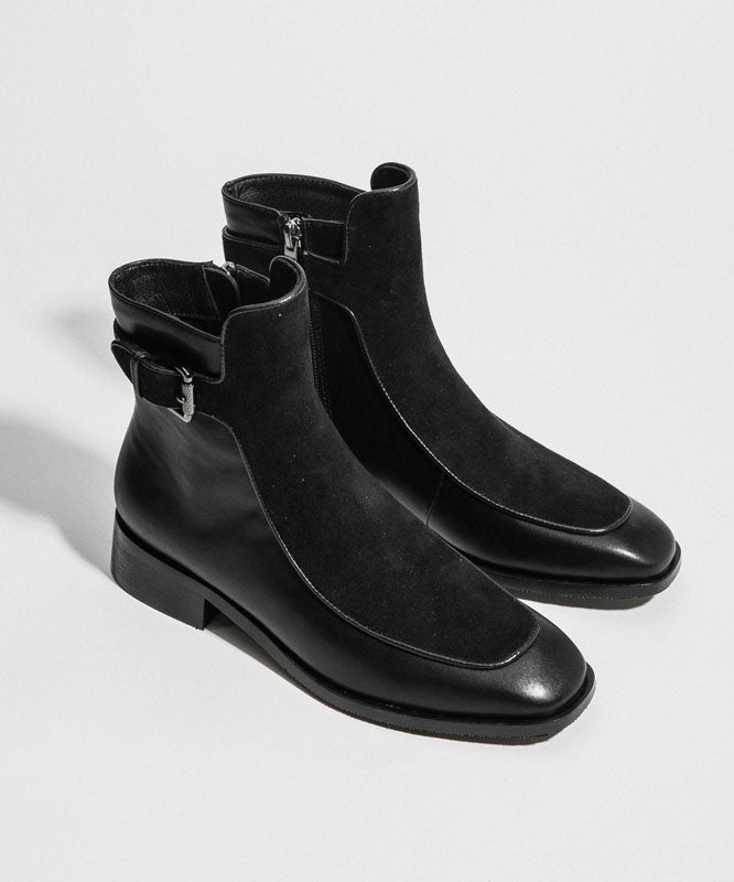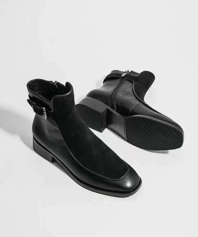 Comfy Splicing Sequined Chunky Boots Black Cowhide Leather