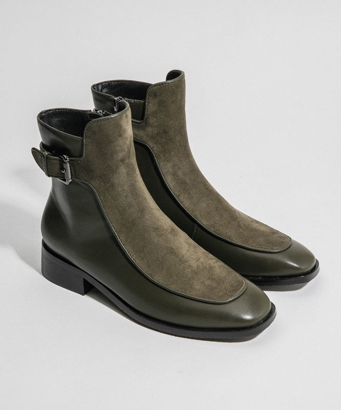 White Chunky Cowhide Leather Zippered Splicing Boots