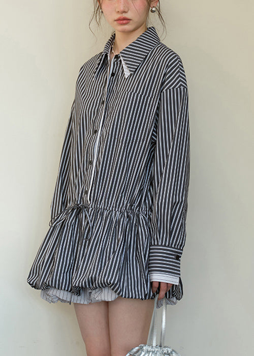 Black Button Lace Up Cotton Fall Shirt Dresses Peter Pan Collar