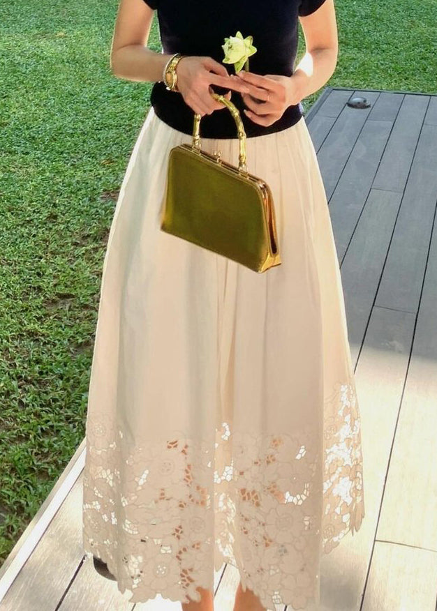 New White Hollow Out Elastic Waist Cotton Skirt Summer