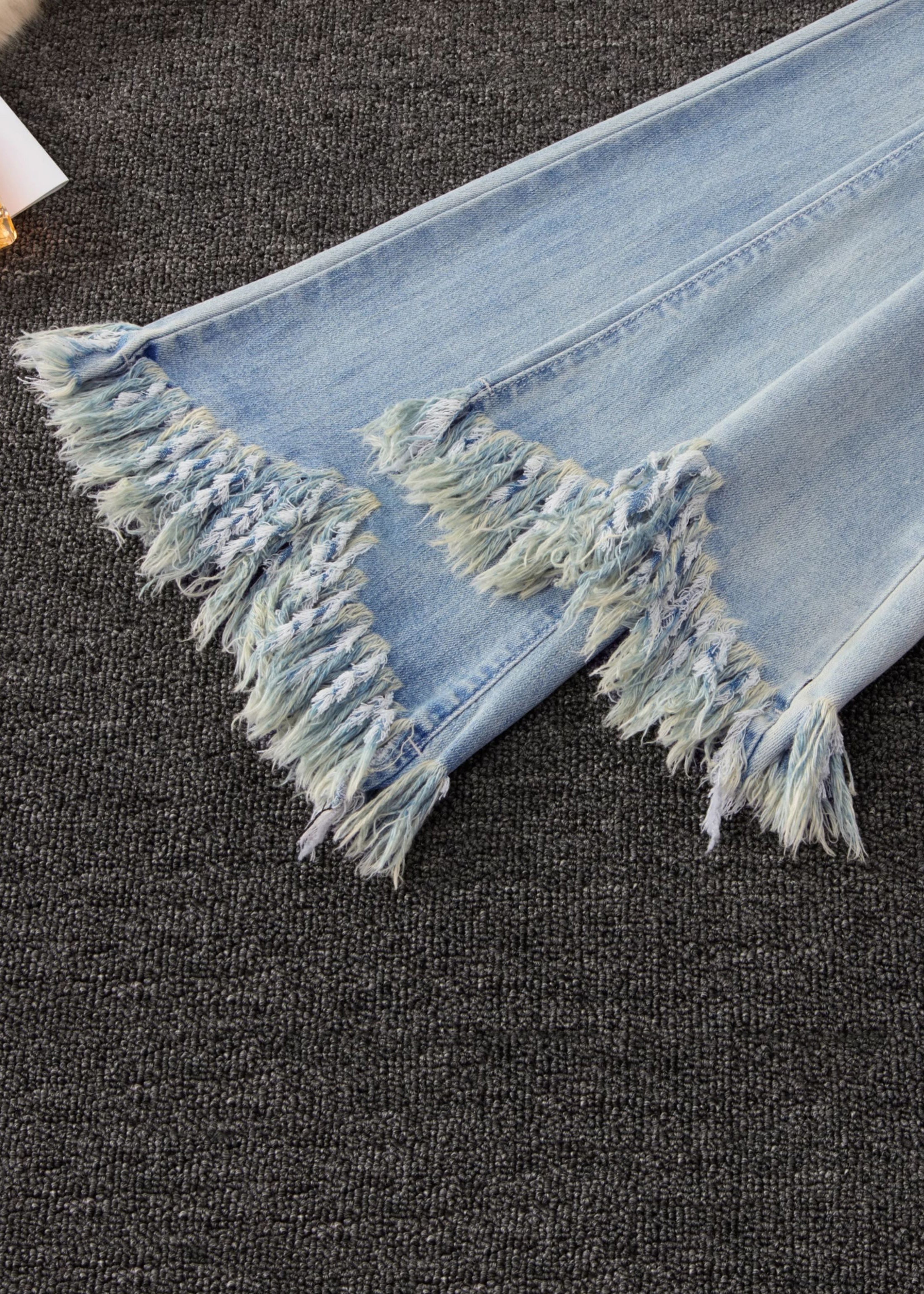 Slim Blue Tasseled High Waist Denim Flare Bottoms Summer