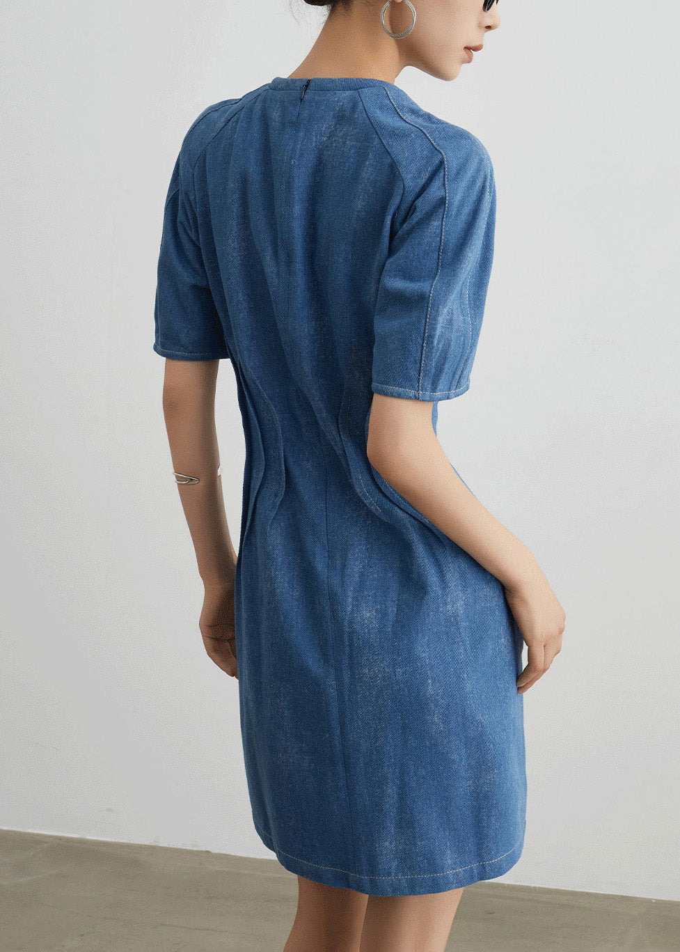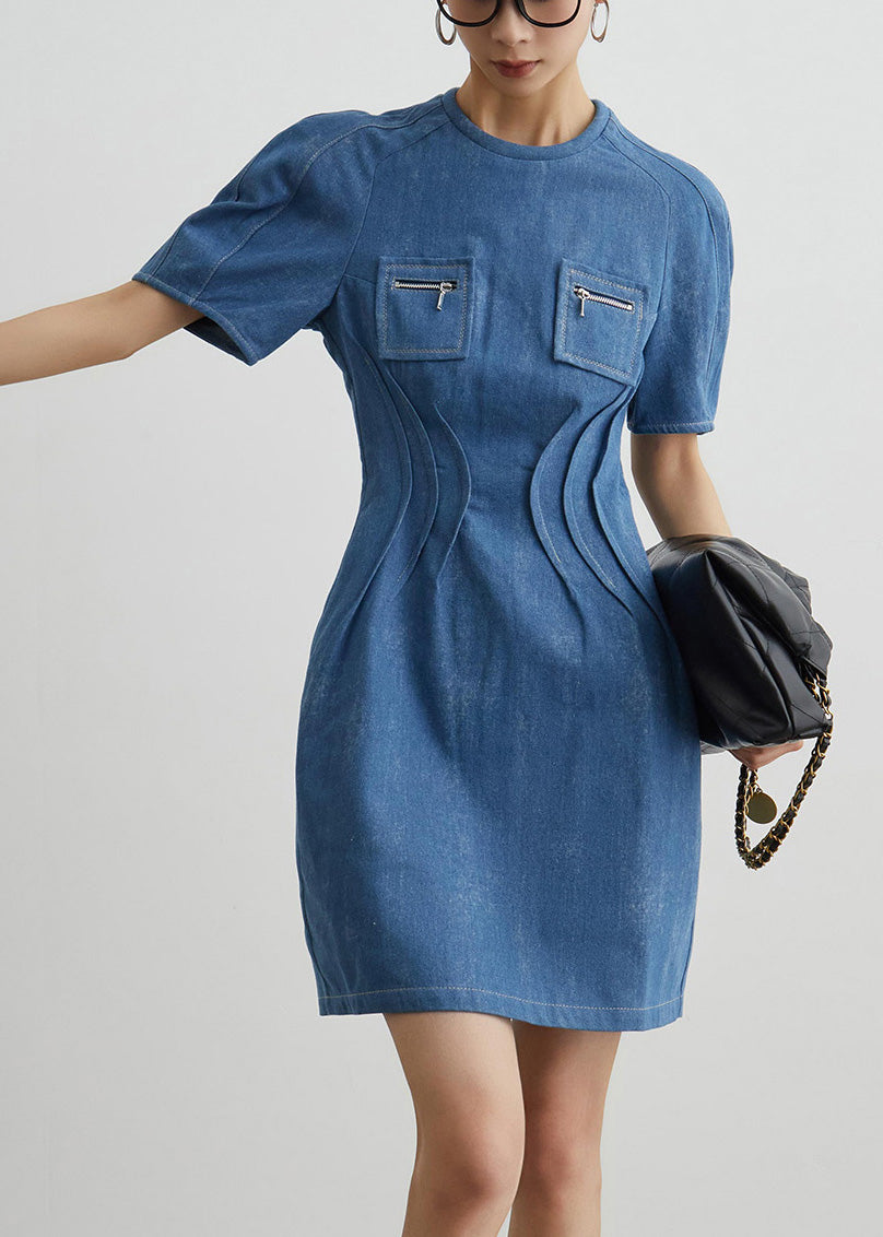 Slim Fit Blue Pockets High Waist Denim Mid Dress Summer