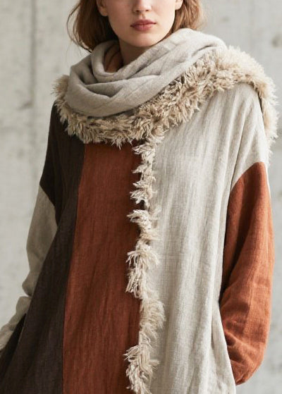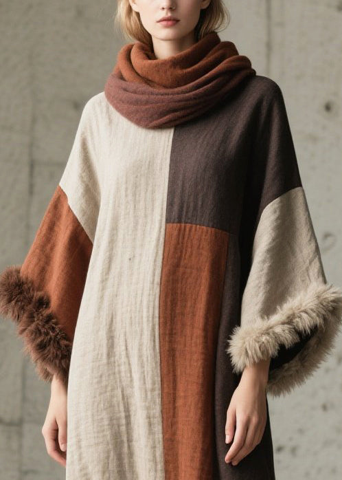 Loose Colorblock Asymmetrical Patchwork Faux Fur Dress Fall