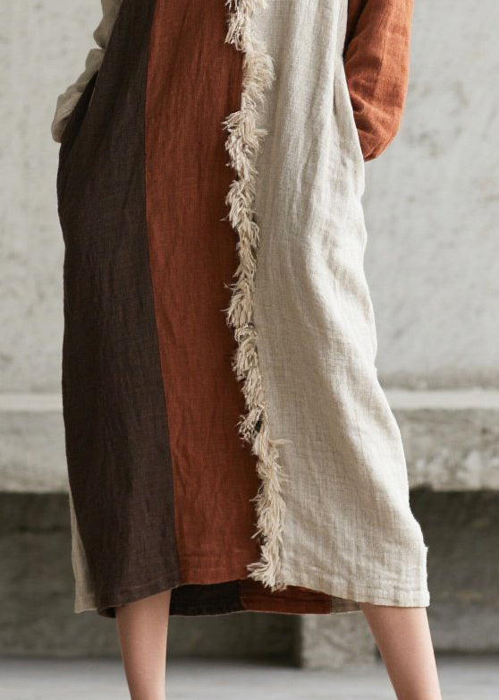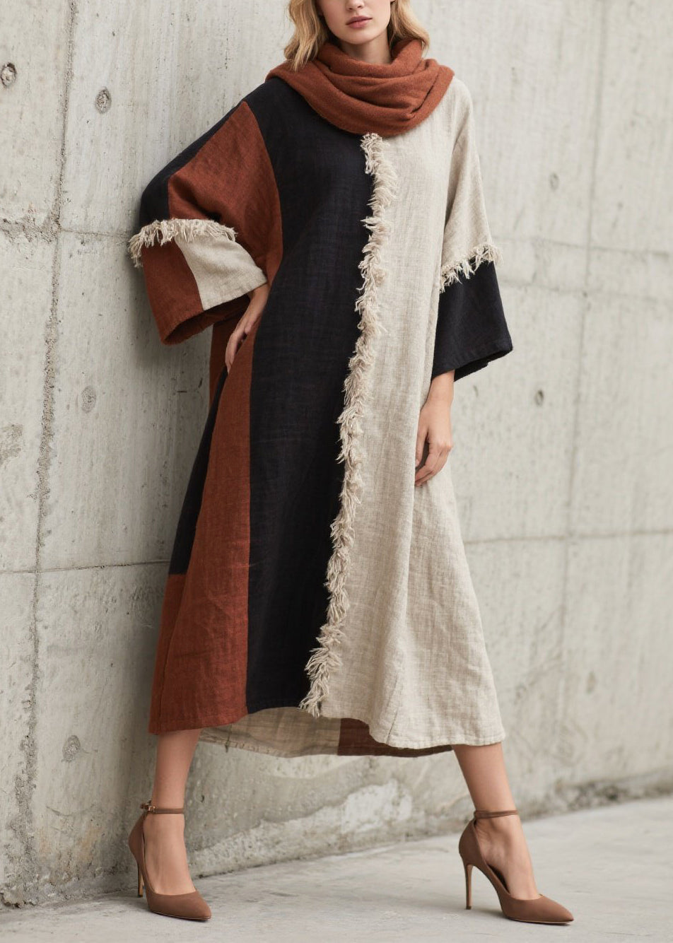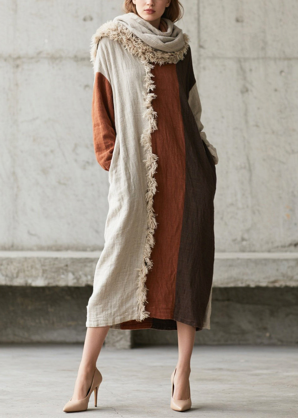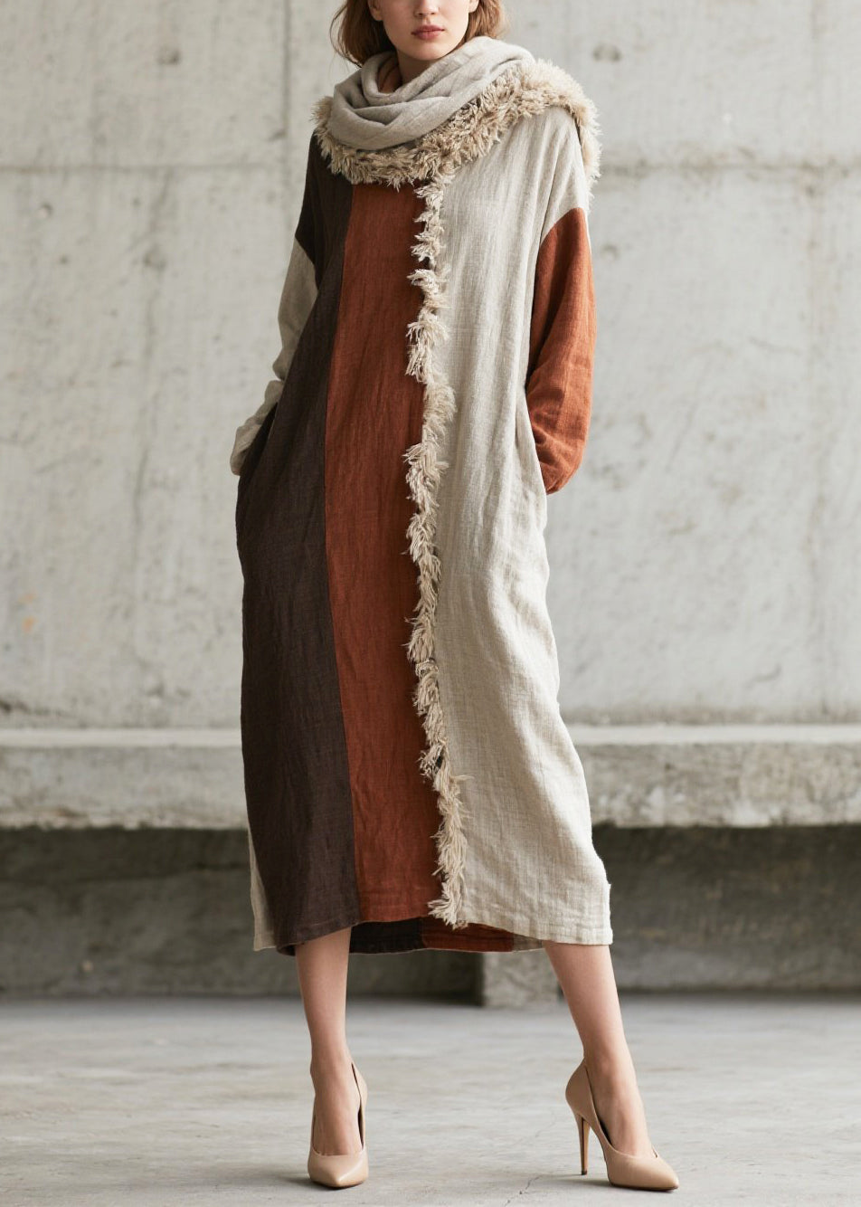 Stylish Colorblock Oversized With Pockets Cotton Holiday Dress Fall