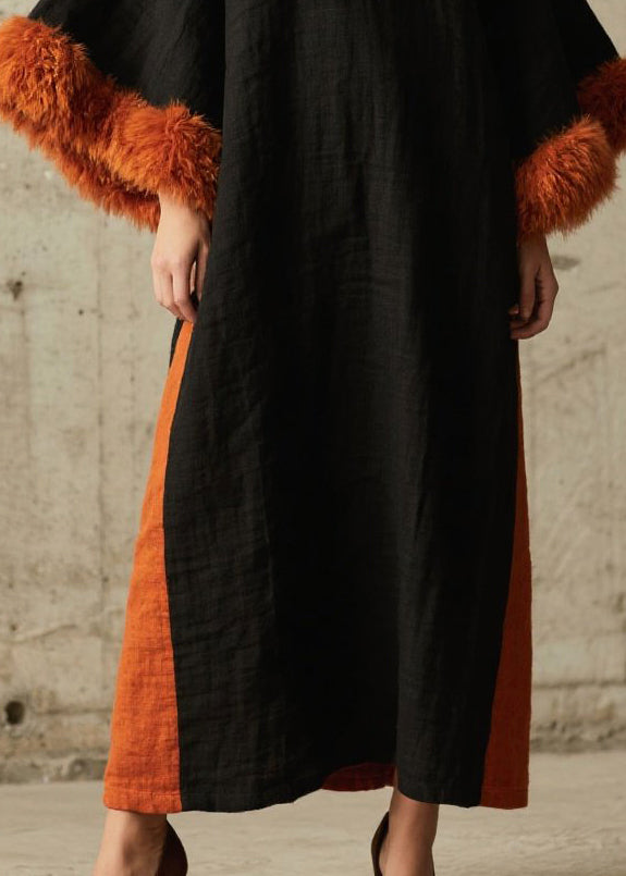 Bohemian Black Oversized Patchwork Faux Fur Maxi Dresses Fall
