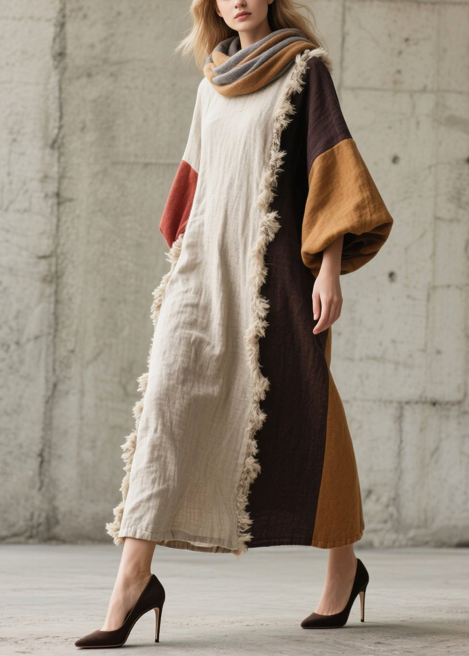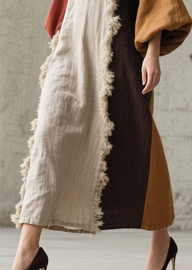 Italian Colorblock Asymmetrical Patchwork Faux Fur Maxi Dresses Fall