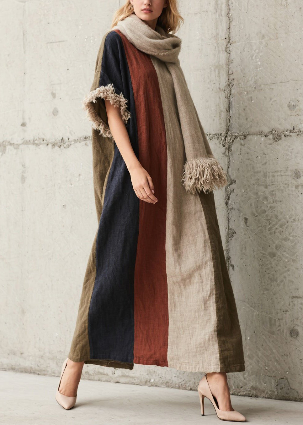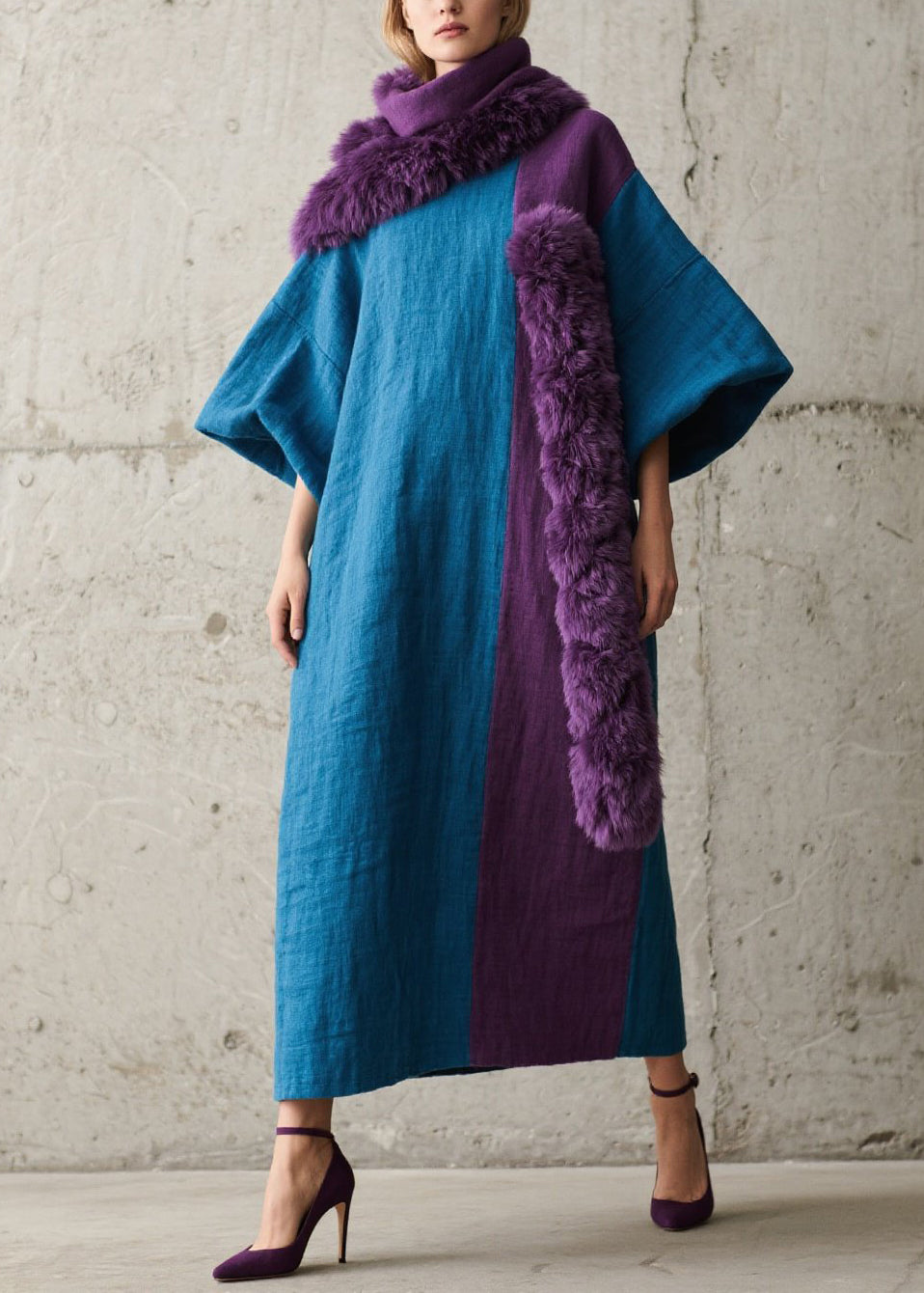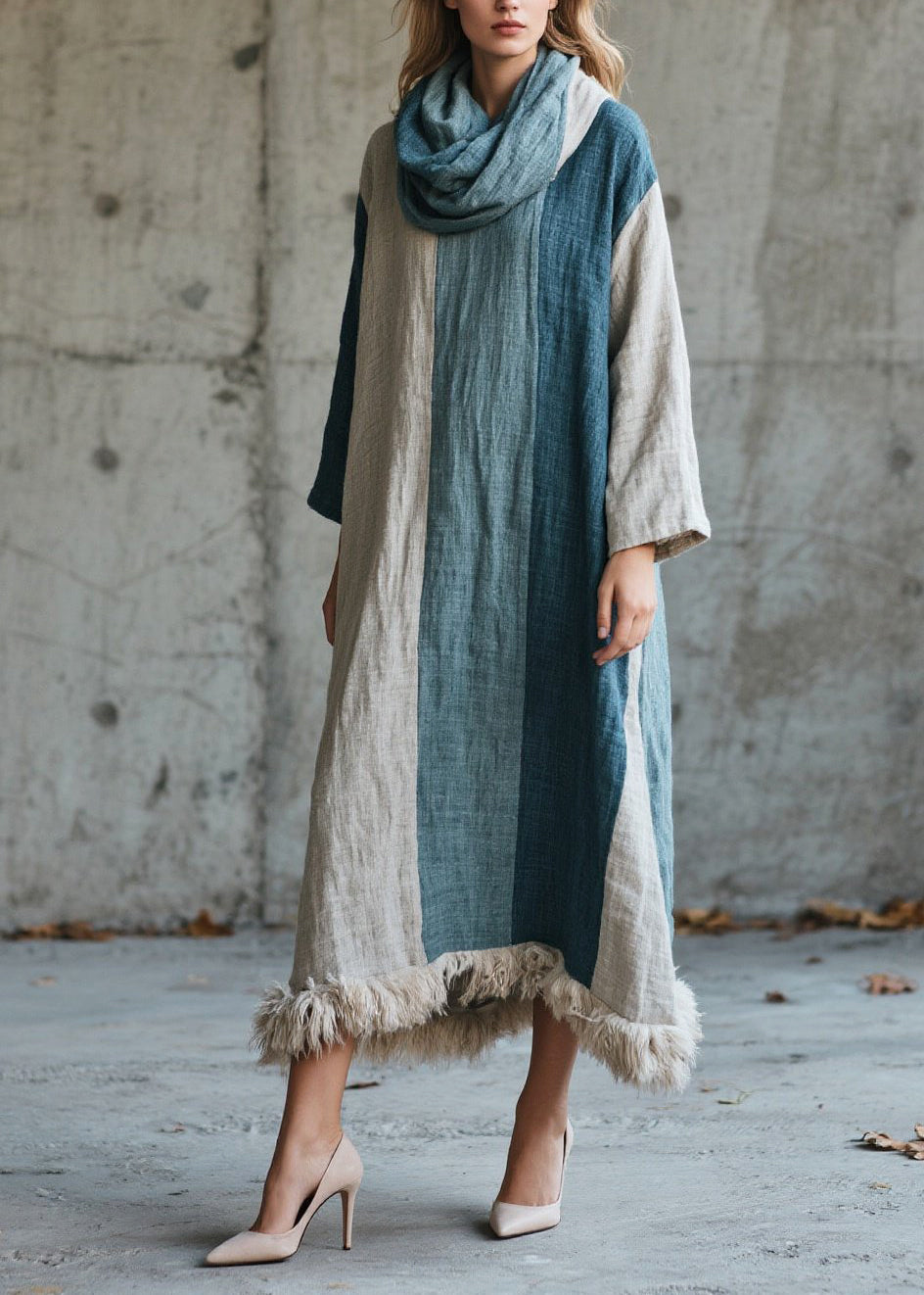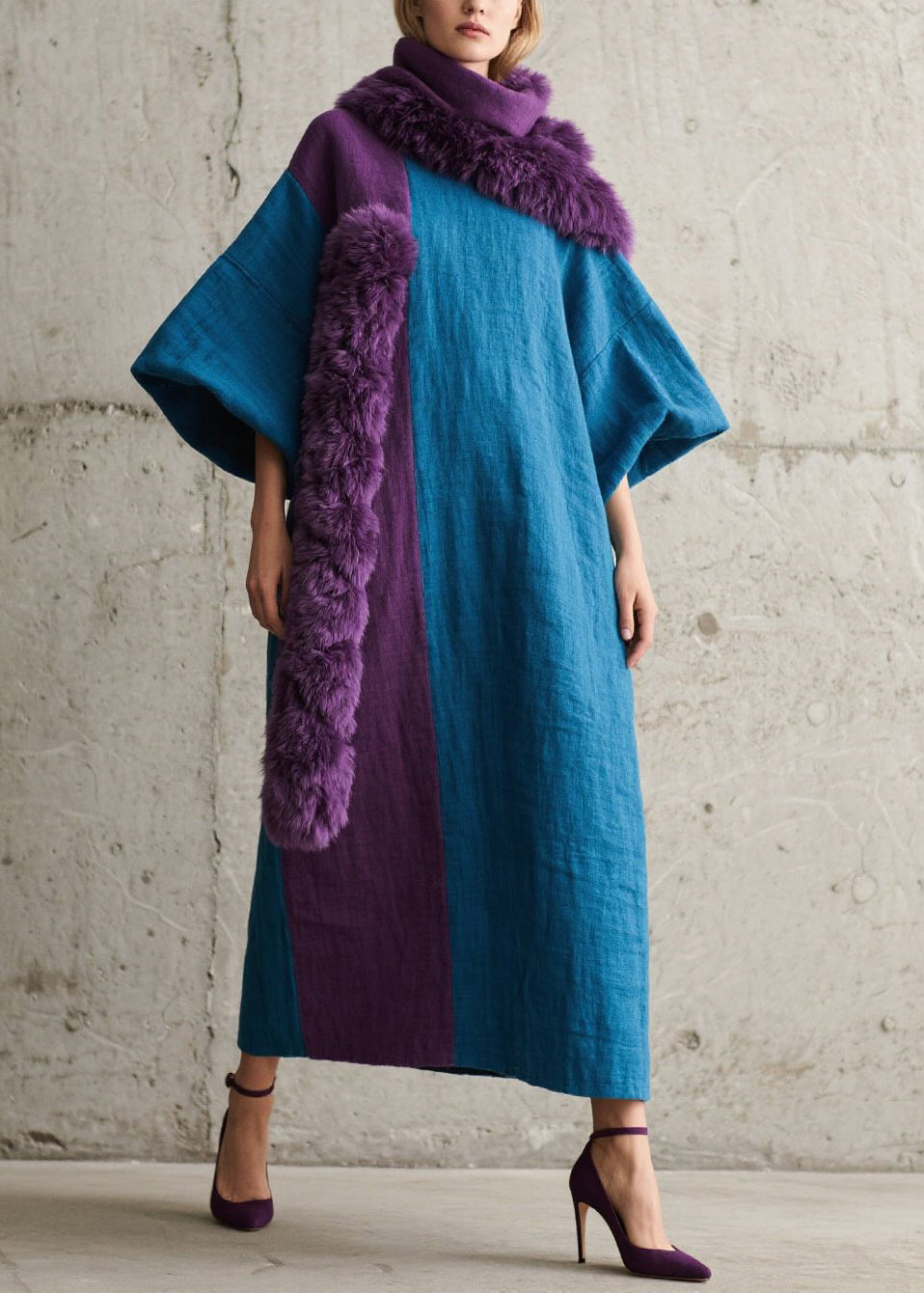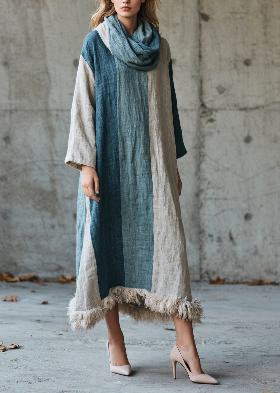 Italian Colorblock Oversized Patchwork Faux Fur Holiday Dress Fall