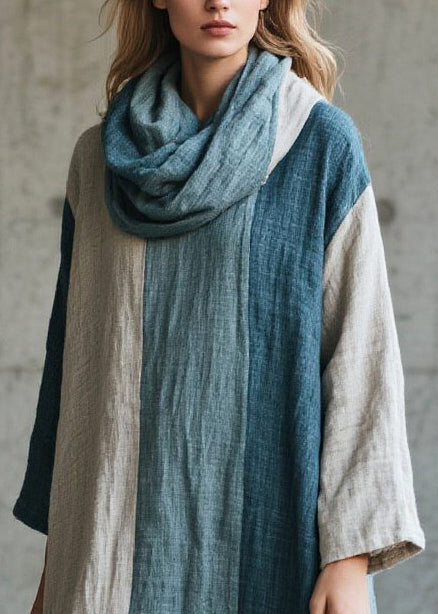 Simple Blue Oversized Cotton Long Dress Fall