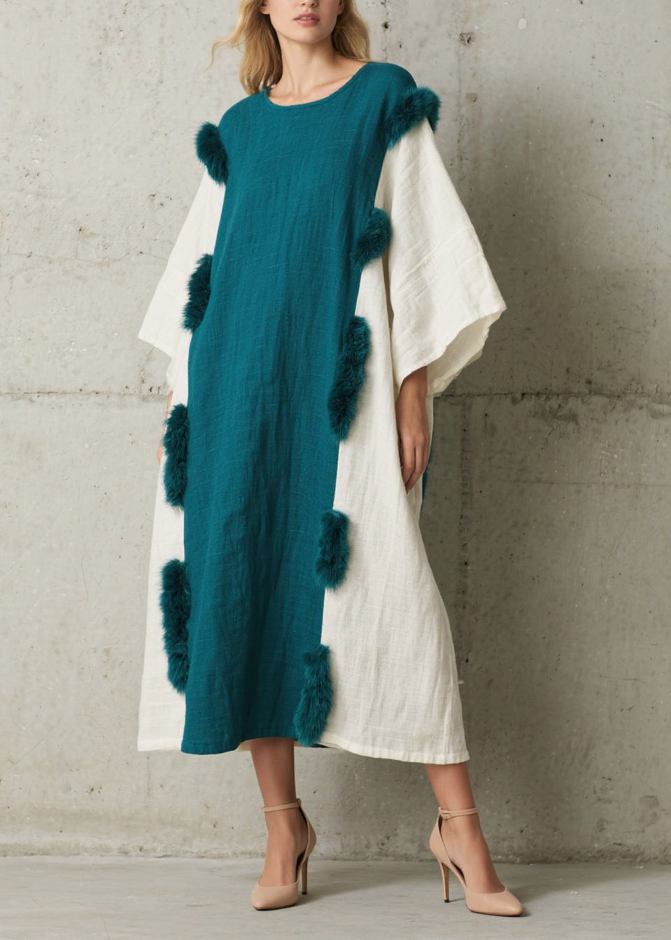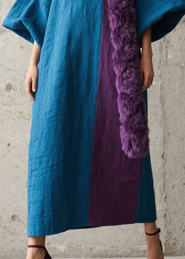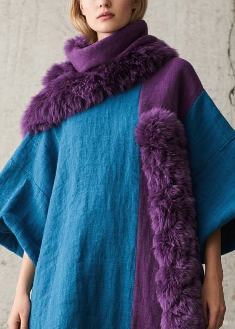 Bohemian Peacock Blue Oversized Patchwork Faux Fur Holiday Dresses Fall