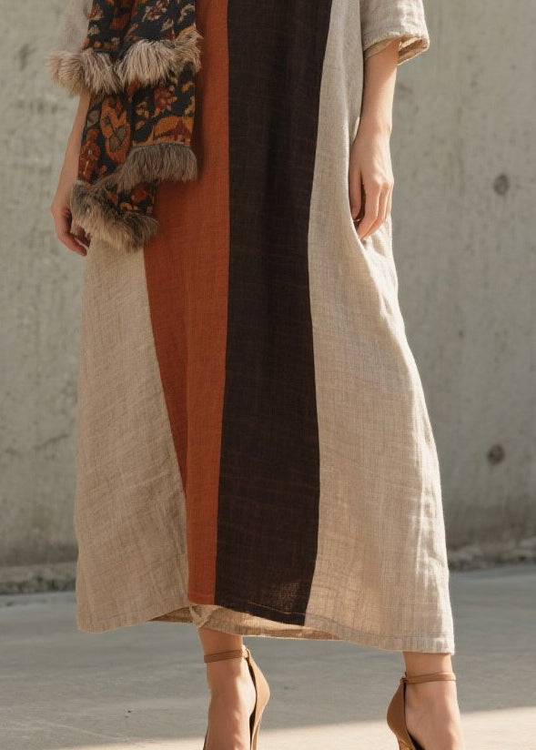 Colorblock Patchwork Cotton Long Dress Oversized Summer