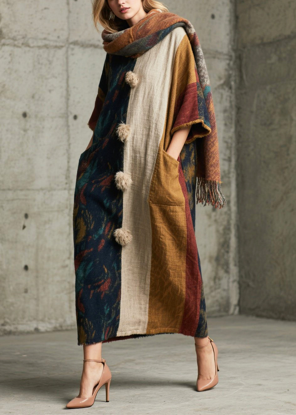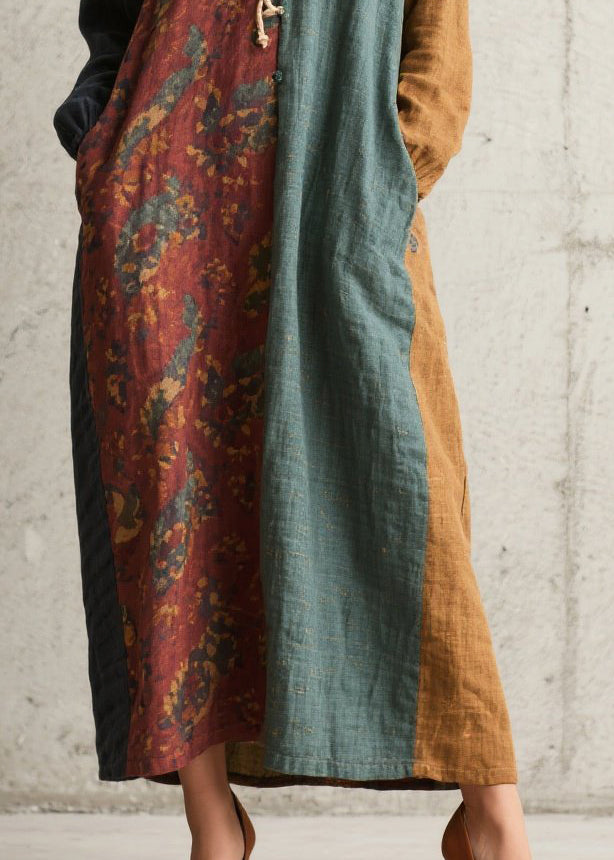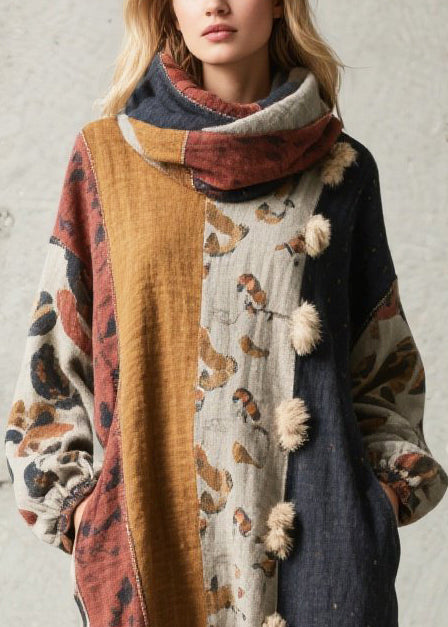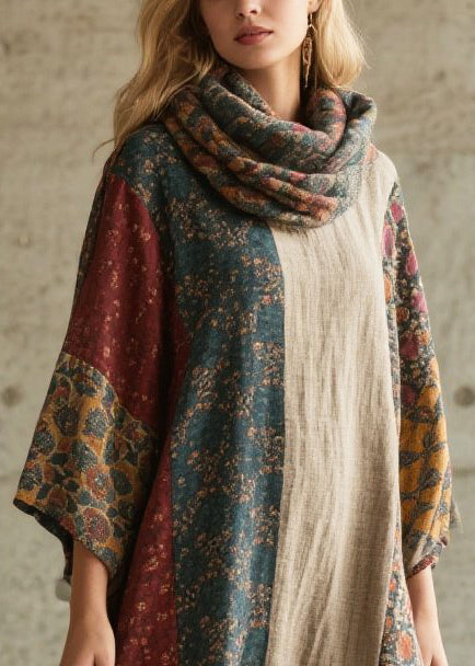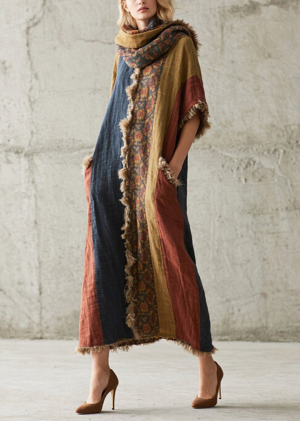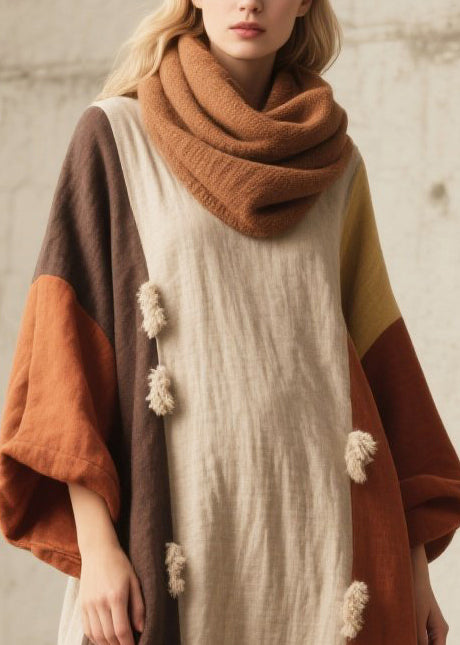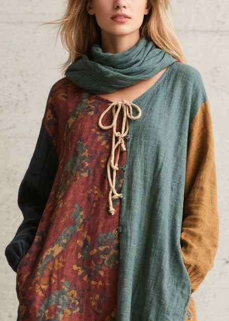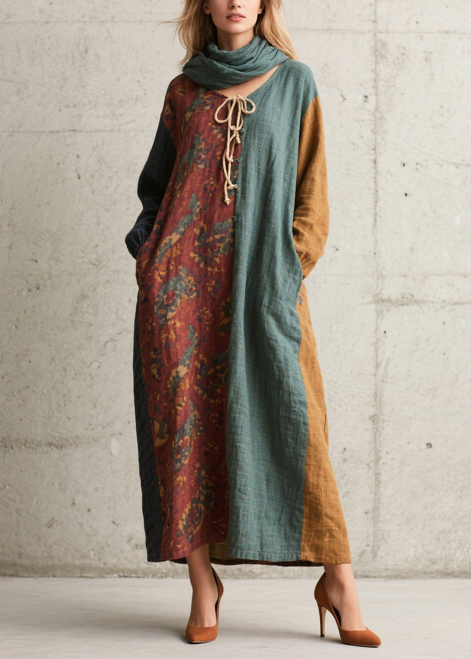 Boho Colorblock Oversized Patchwork Cotton Dress Fall