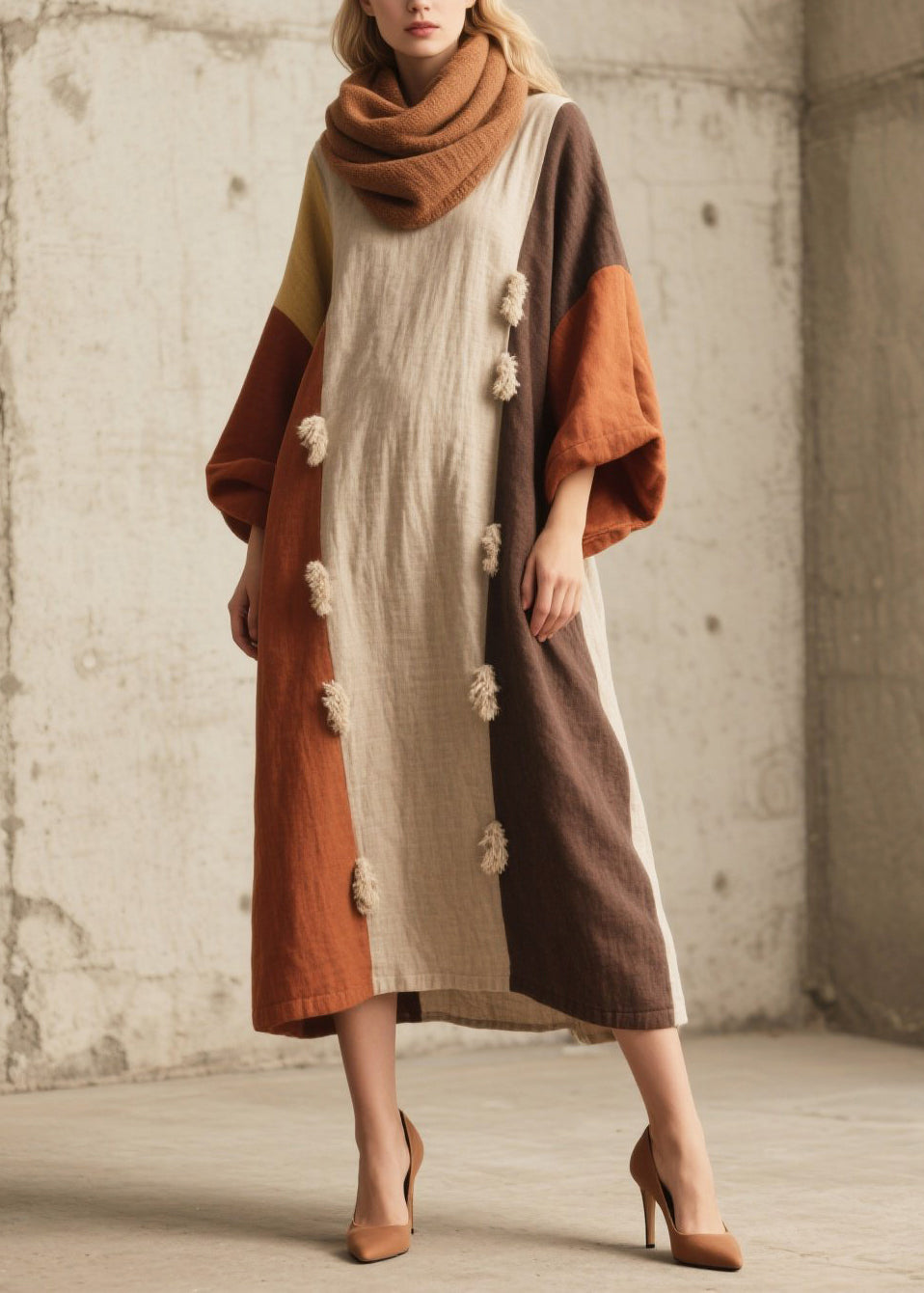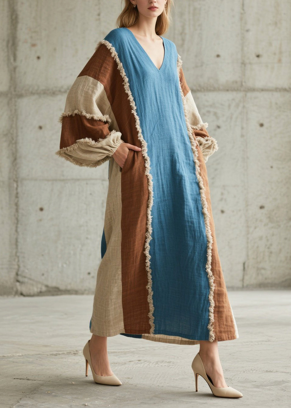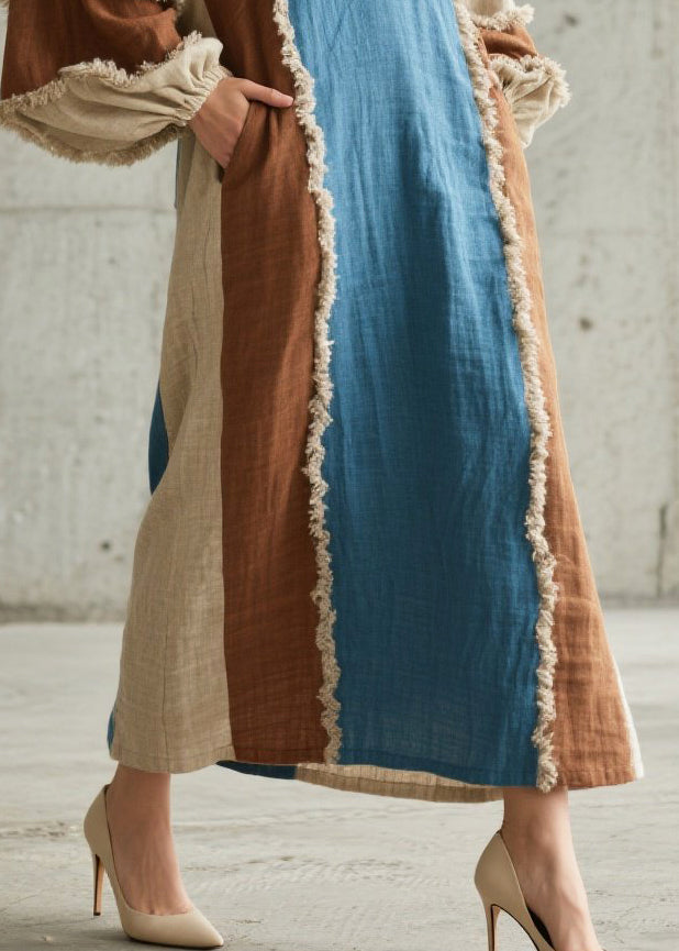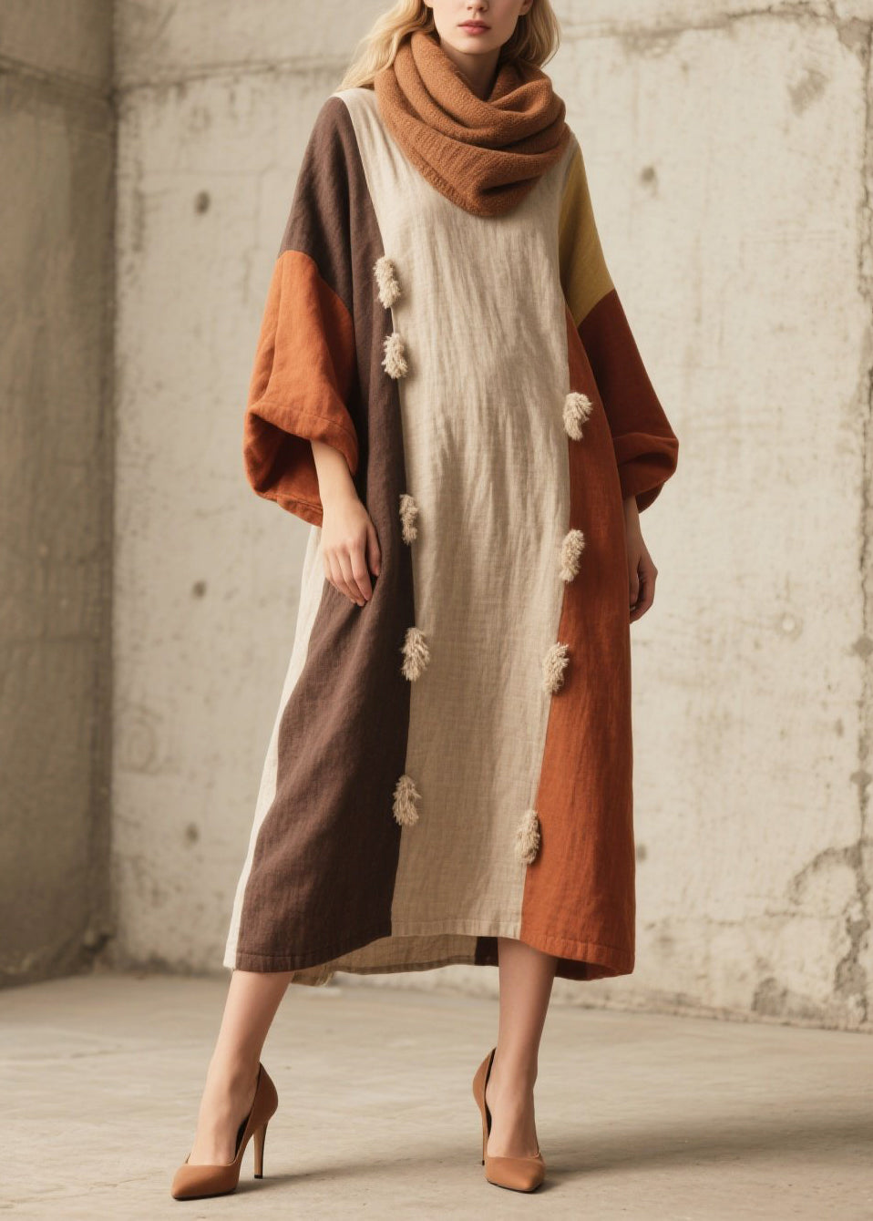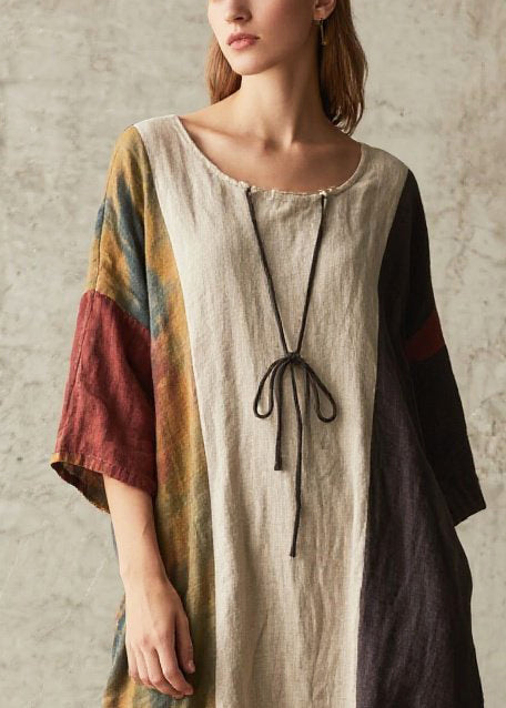 Colorblock Patchwork Cotton Vacation Dress Oversized Fall