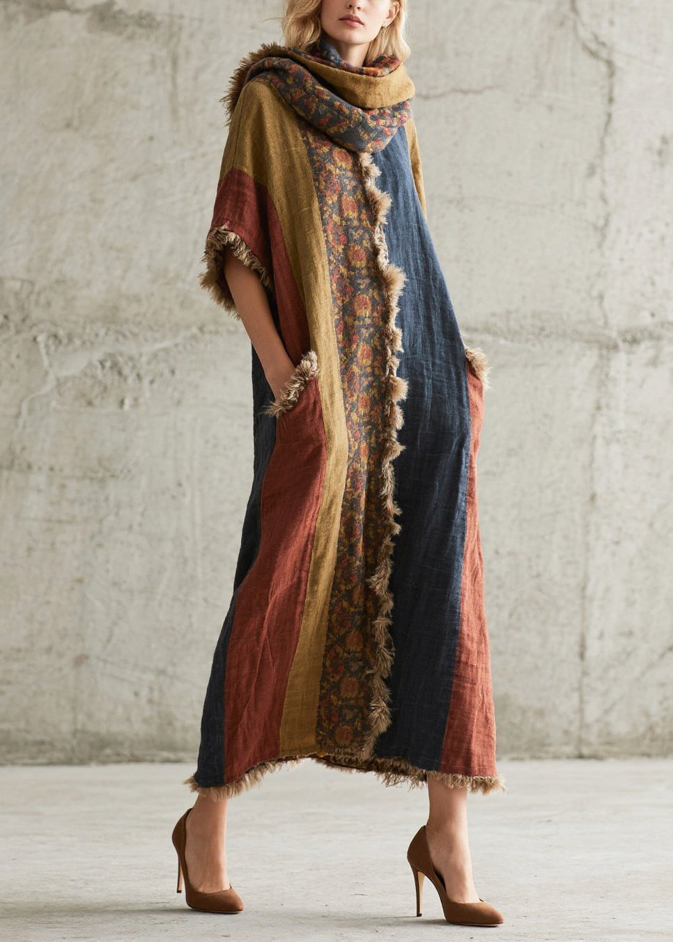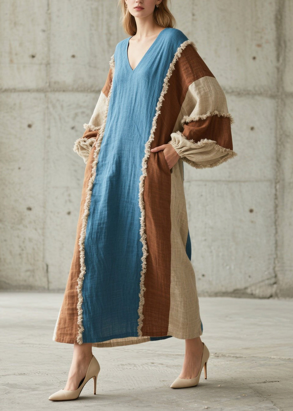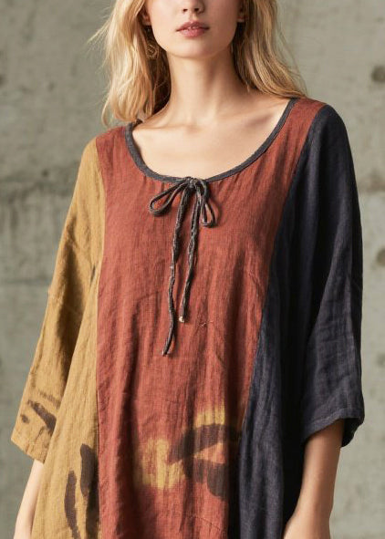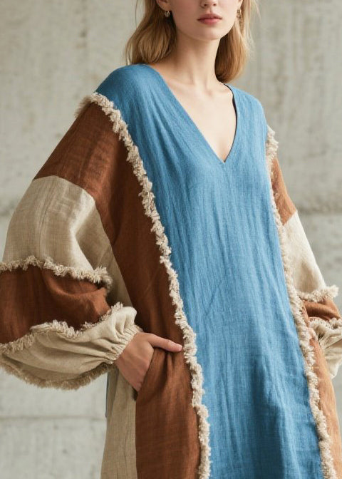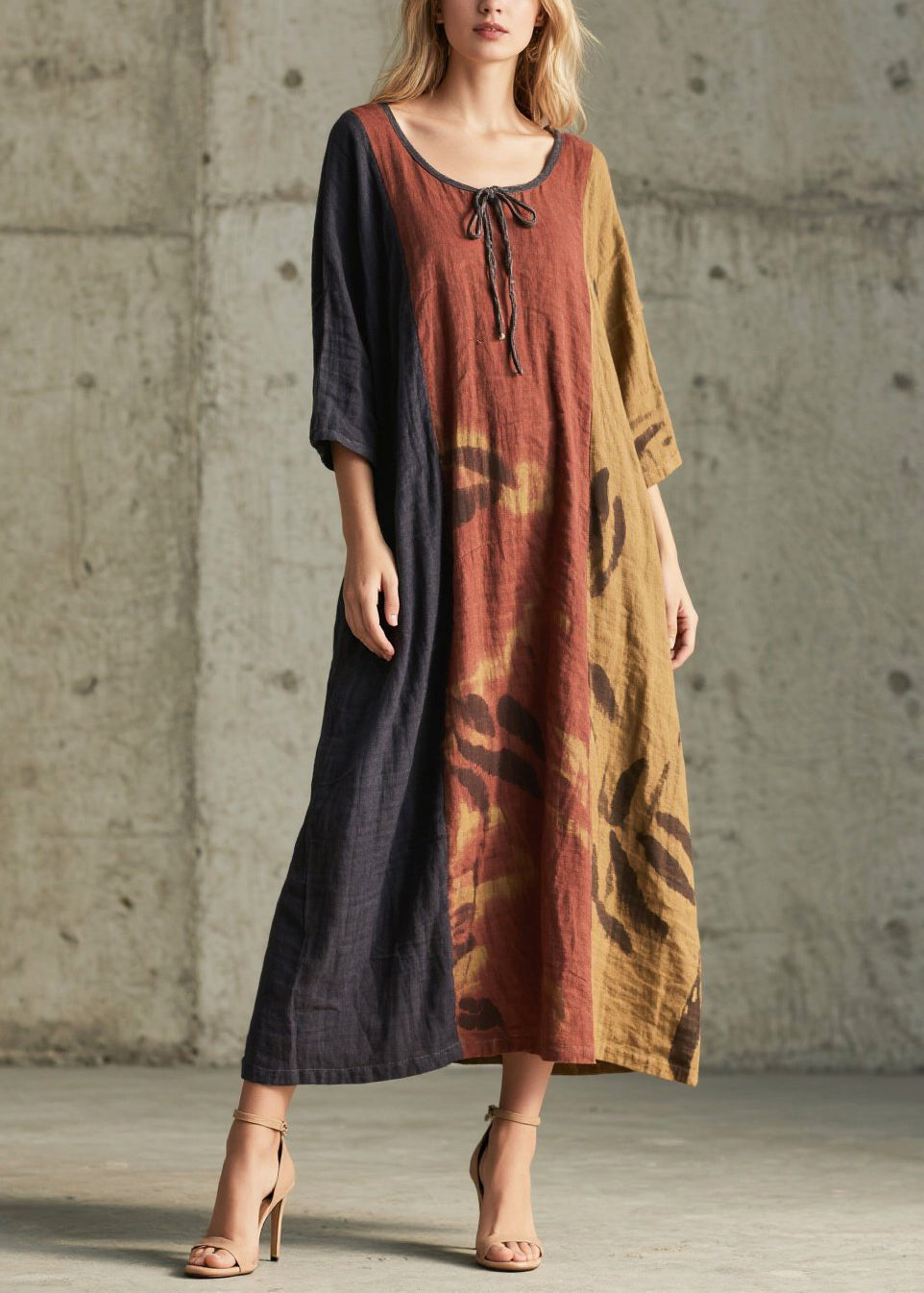 Colorblock Patchwork Cotton Vacation Dress Oversized Fall