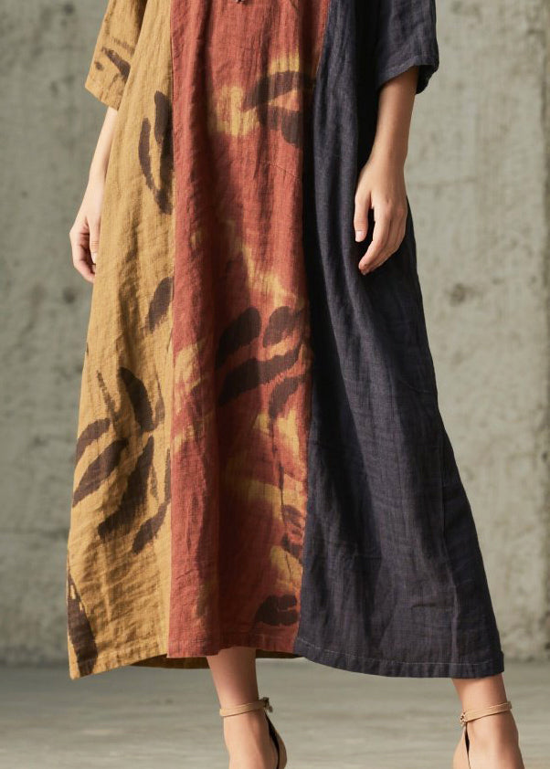 Classy Mixed Color Oversized Print Cotton Holiday Dress Summer