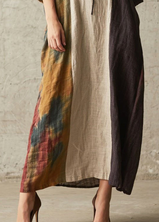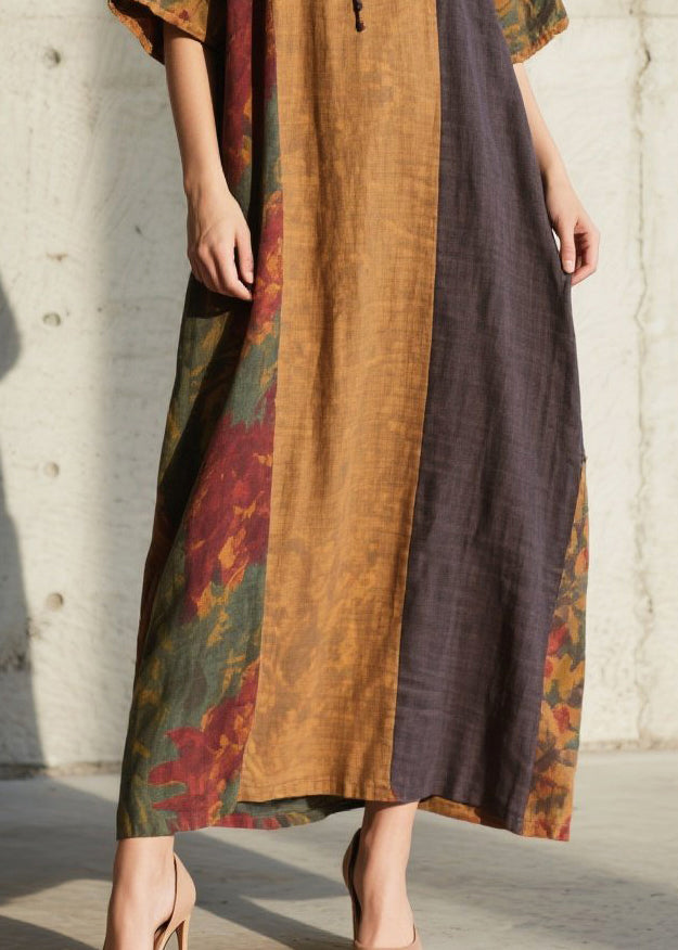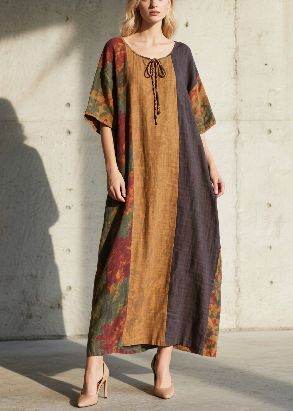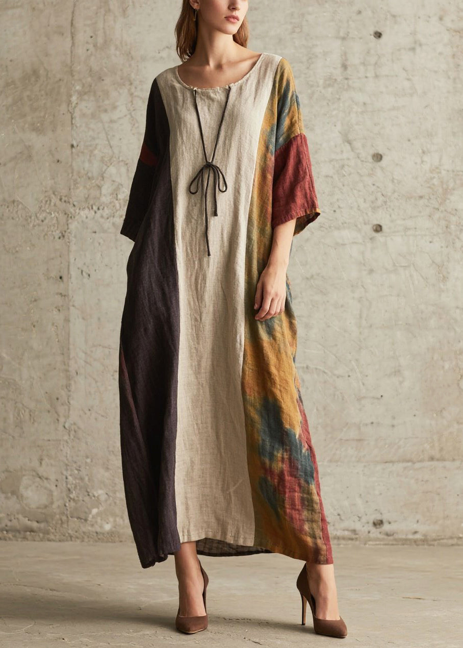 Women Colorblock Oversized Patchwork Cotton Maxi Dresses Summer