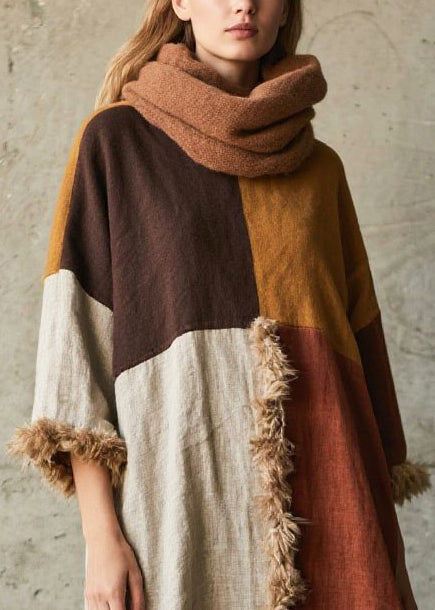 Italian Coffee Oversized Patchwork Faux Fur Vacation Dresses Fall