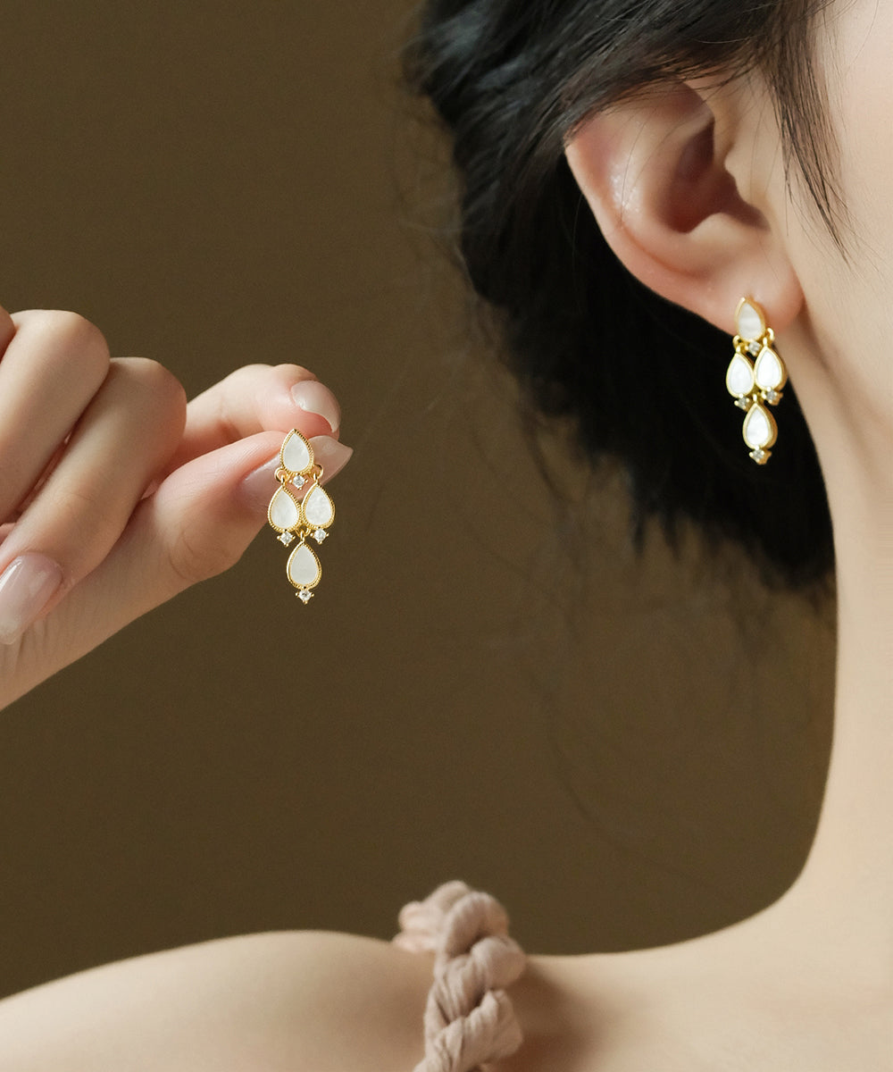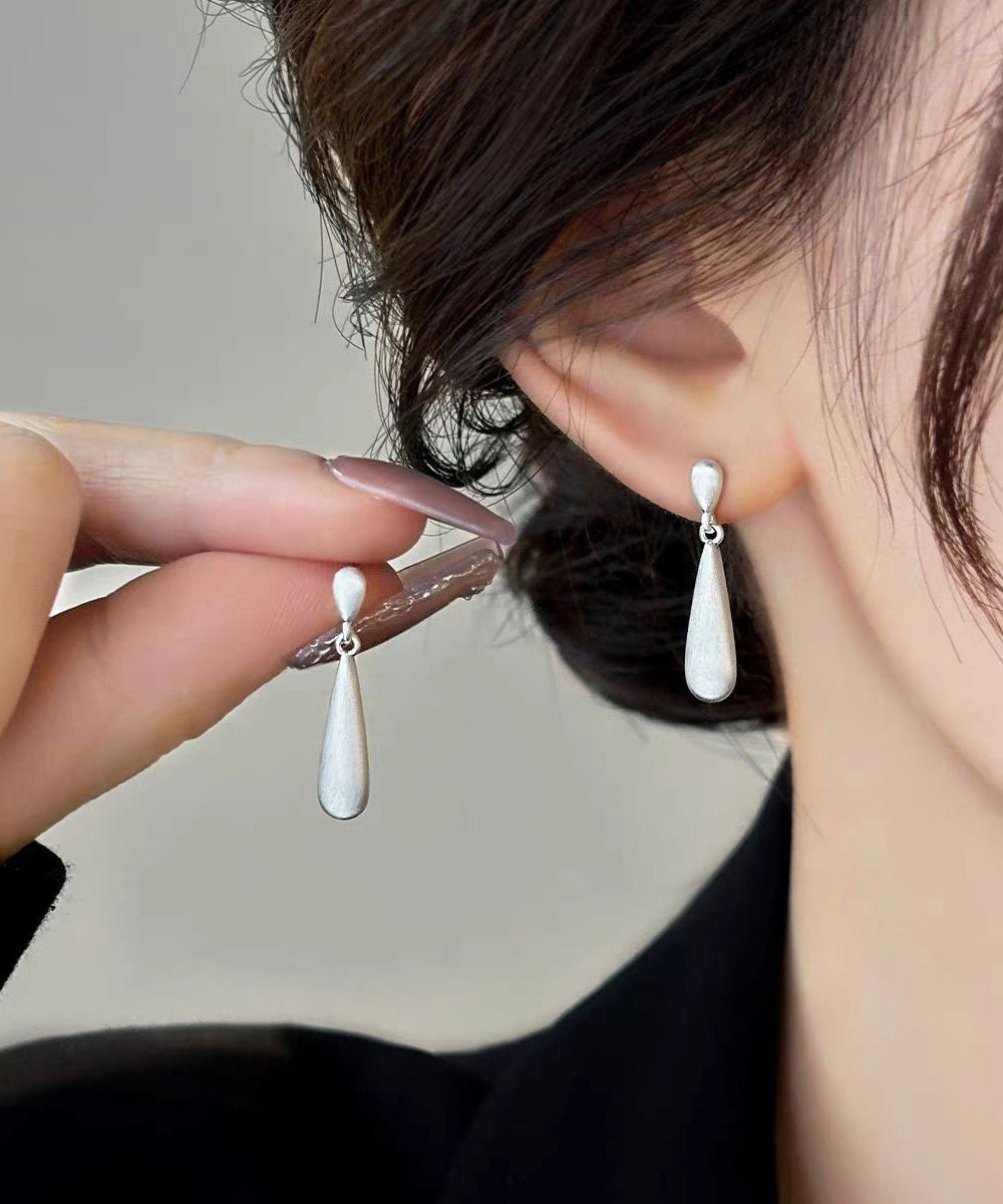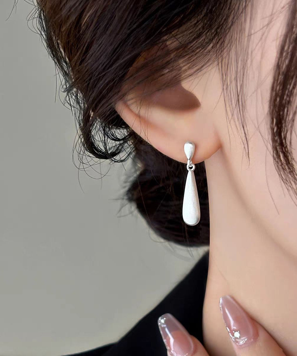 Art White Copper Overgild Dull Polish Water Drop Drop Earrings