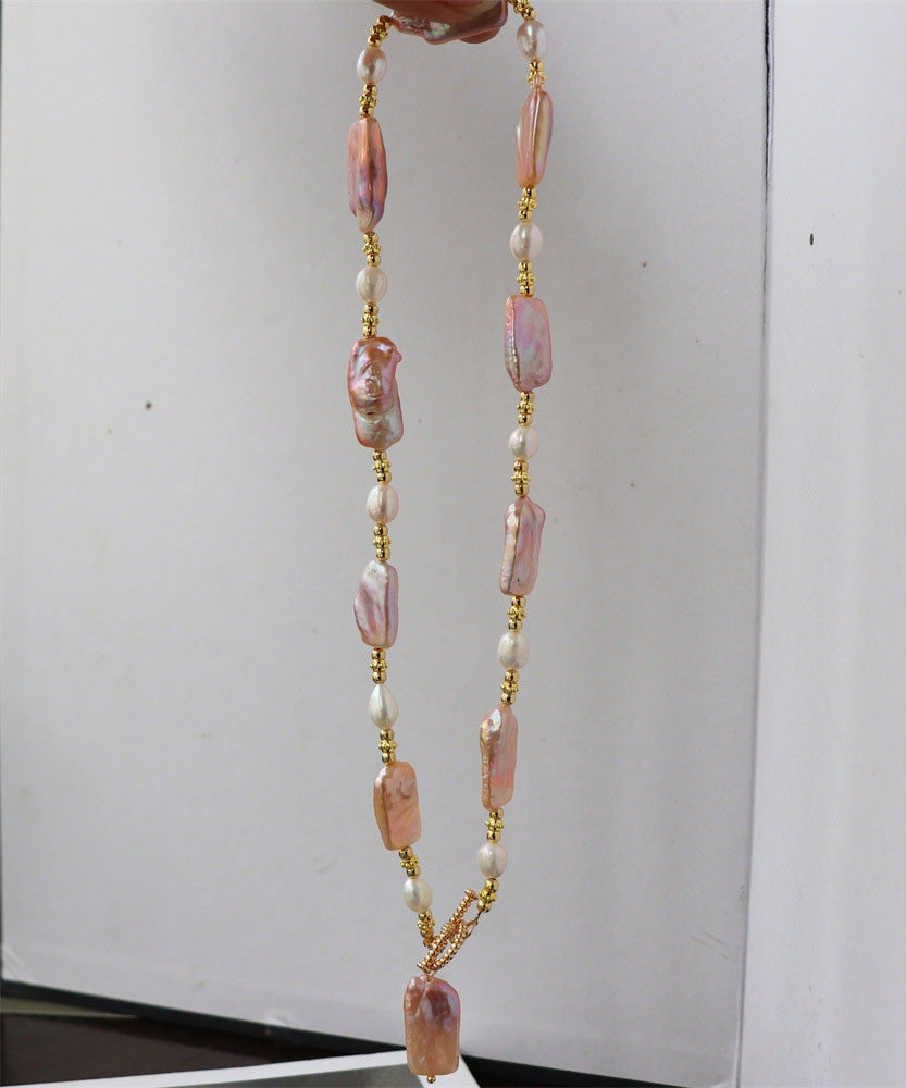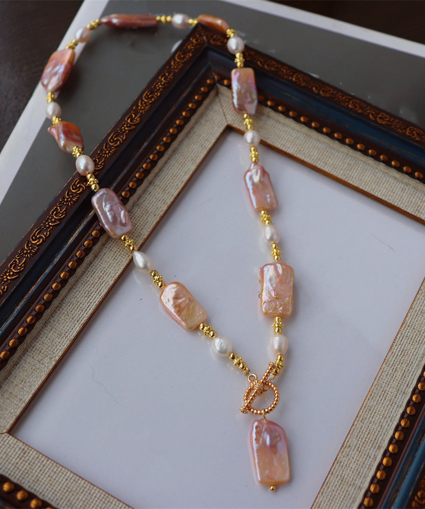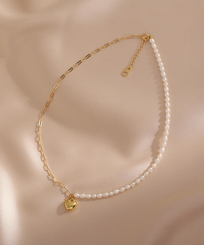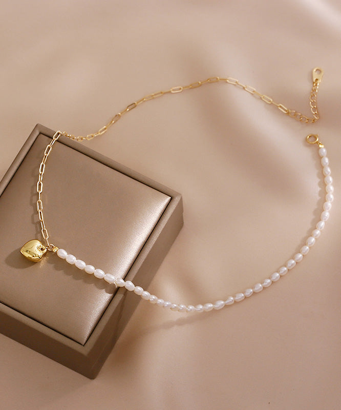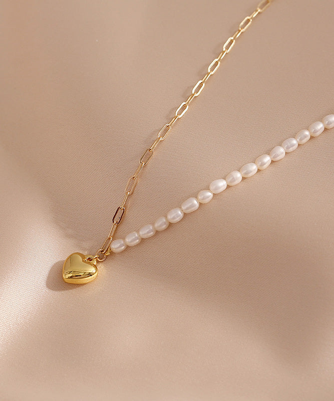 Chic Colorblock 14K Gold Asymmetrical Patchwork Pearl Love Pendant Necklace