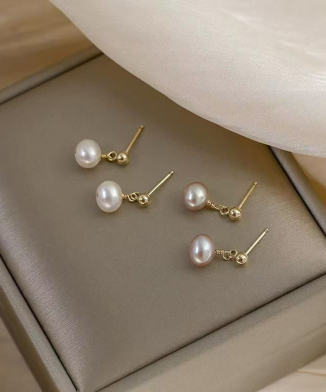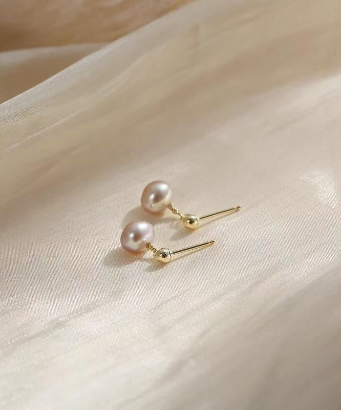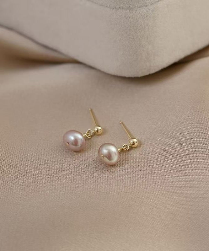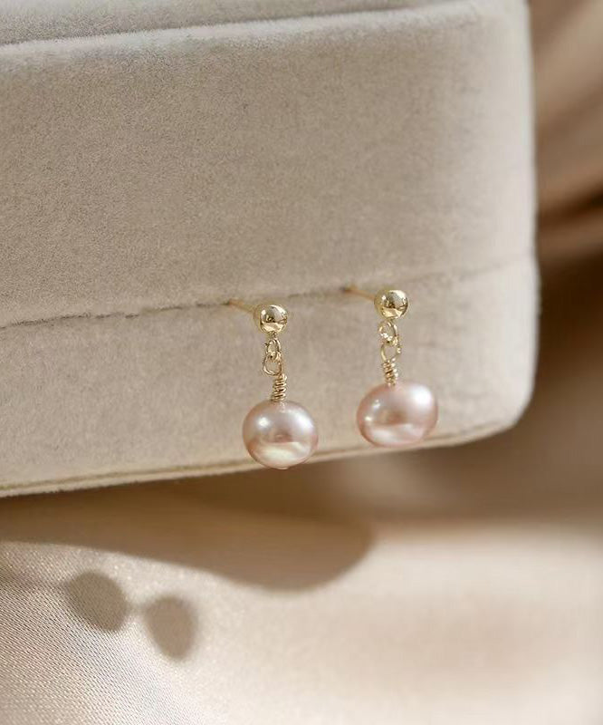 Brief Light Purple 14K Gold Pearl Drop Earrings